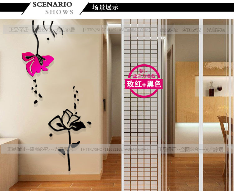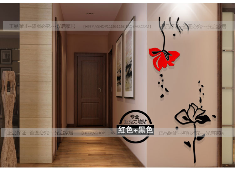 紅色+黑色小3d水晶立體亞克力墻貼電視背景墻客廳餐廳臥室沙發裝飾貼畫墻飾
