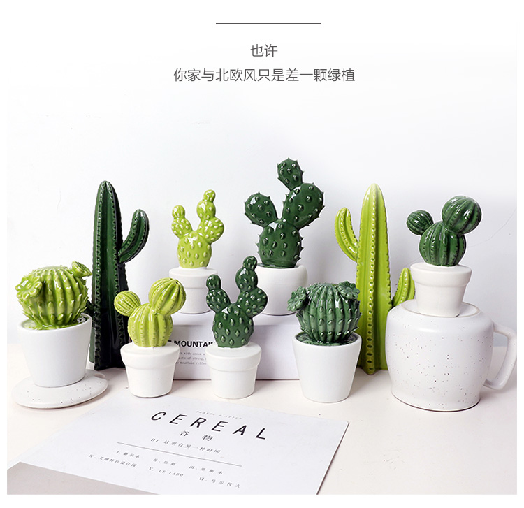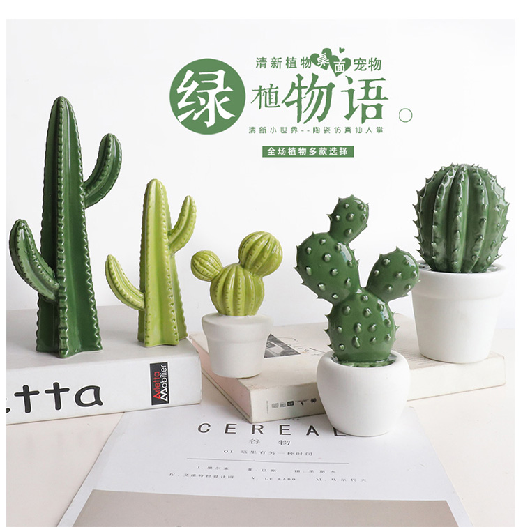 盆栽大號仙人掌深綠北歐陶瓷仙人掌擺件臥室房間ins小清新辦公室桌面酒柜裝飾品擺設