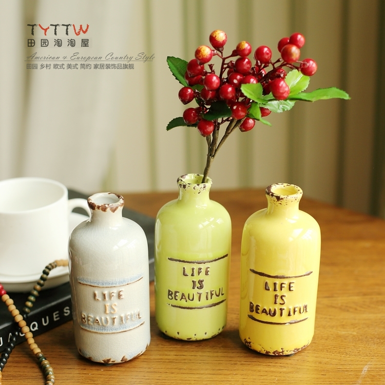 | 本公司大部分商品6一10天到貨。不接急單。急單的客戶請不要下單。感謝諒解與合作! 陶瓷復古做舊小花瓶花插迷你花瓶家居擺件創意花器 復古經典器型設計精心設計得弧形造型,不僅高貴,更賦予優雅的格調,材質飽通透,更增加花瓶的奢華品質。在古代和現代一些茶室里只插上一枝白梅或一輪向日葵等簡單的花草就能營造一種幽雅、返璞歸真的氛圍。插花藝術,必須做到面、點、線呼應,好的插花,就像一個藝術精品,既能陶冶身心,又是美的享受 尺寸:高11.8cm左右 底部直徑5cm左右 材質:陶瓷 標價為單個的價格 -------------------------------------------------------------------------------------------------------- tips:寶貝為復古工藝,做舊程度不同會有個體差異,謝絕任何挑剔