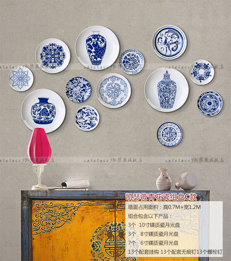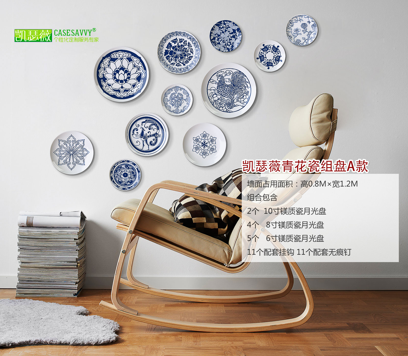 青花組盤A款青花組合瓷盤組盤陶瓷盤中餐廳玄關裝飾掛盤坐盤擺盤盤子墻