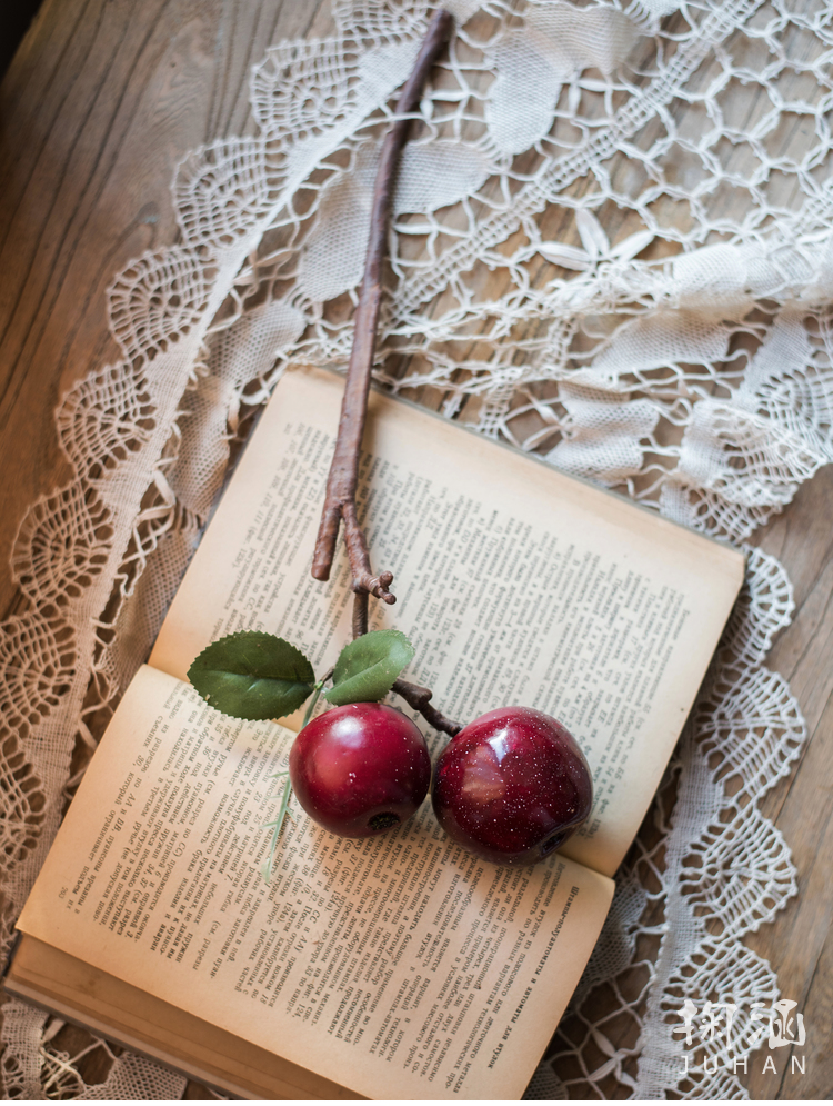 花壺B+紅蘋果5支【掬涵】仿真蘋果枝 裝飾果樹枝花藝搭配裝飾平安寓意圣誕擺件