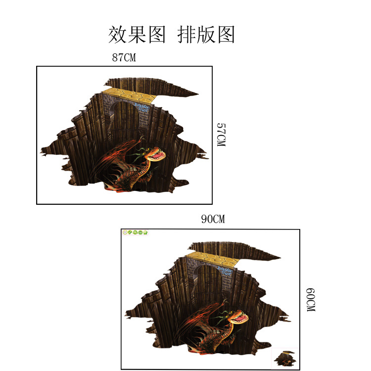 地面恐龍特大恐龍3D立體墻貼紙貼畫臥室創意時尚家居地板貼客廳臥室地貼畫