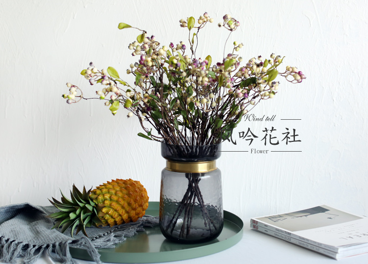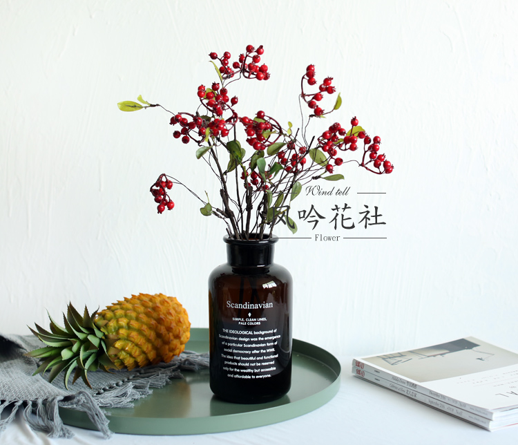 石榴漿果米色8枝+寬邊圓肚瓶風吟 軟裝 仿真石榴果 青藤小紅果 裝飾 擺件家居 插花漿果瓶套裝
