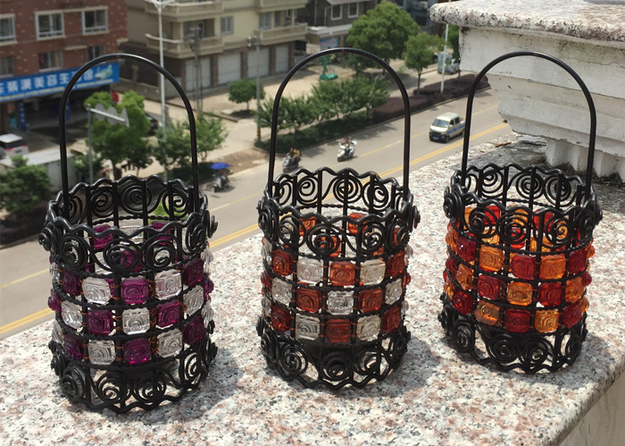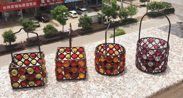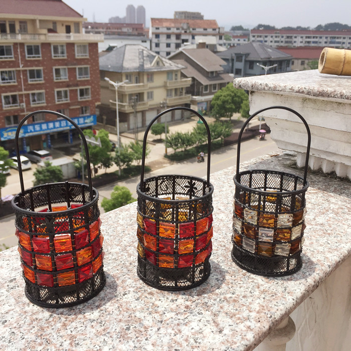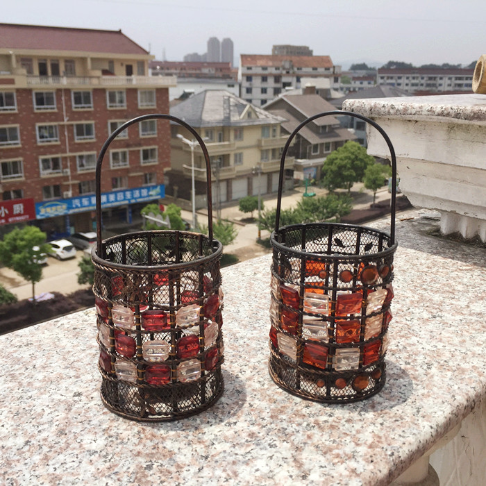 右邊藝佳居鐵制手工串珠燭臺擺件歐式古典婚慶酒吧咖啡吧長方圓形燭臺