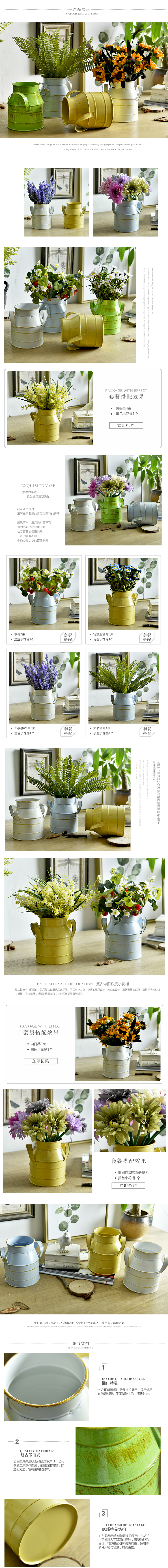 LY2花筒-果綠美式鄉村鐵藝復古雙耳圓桶多色花瓶小花筒花器仿真花植物套裝擺件