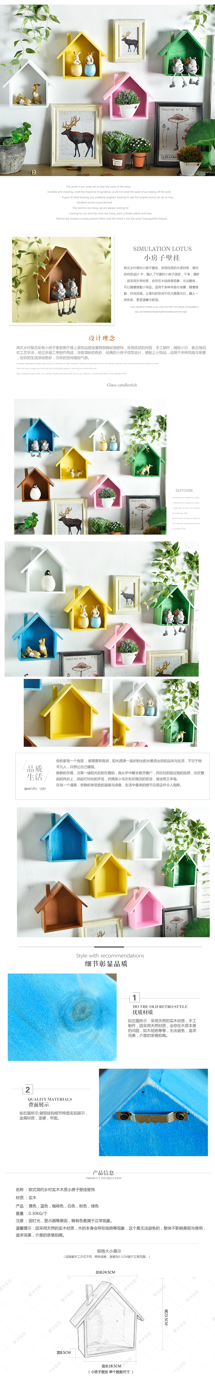 小房子壁掛-黃美式鄉村復古彩色小房子家居客廳墻上裝飾品壁掛置物架隔板墻壁飾