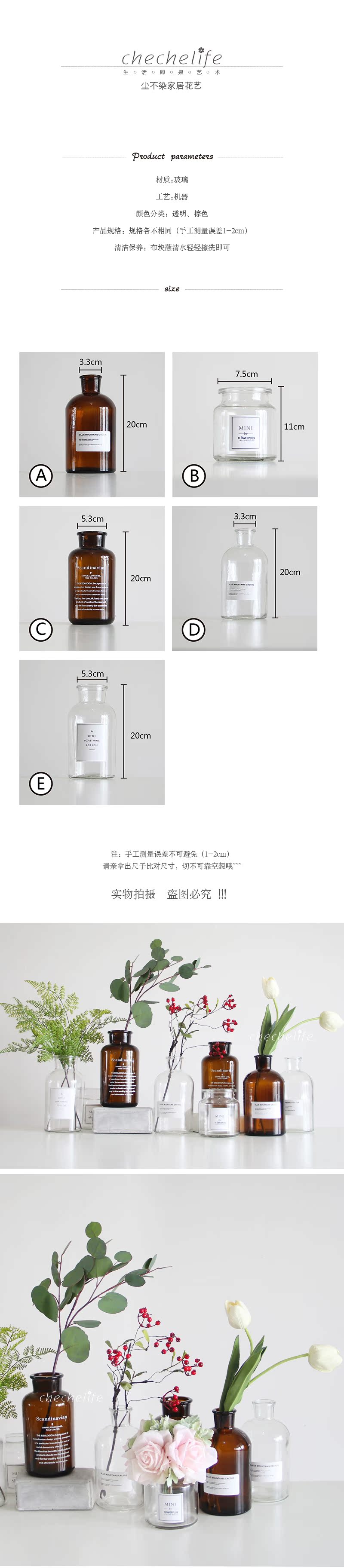 A款INS風格簡約花瓶北歐小清新插花花器客廳臥室擺件標簽玻璃花瓶