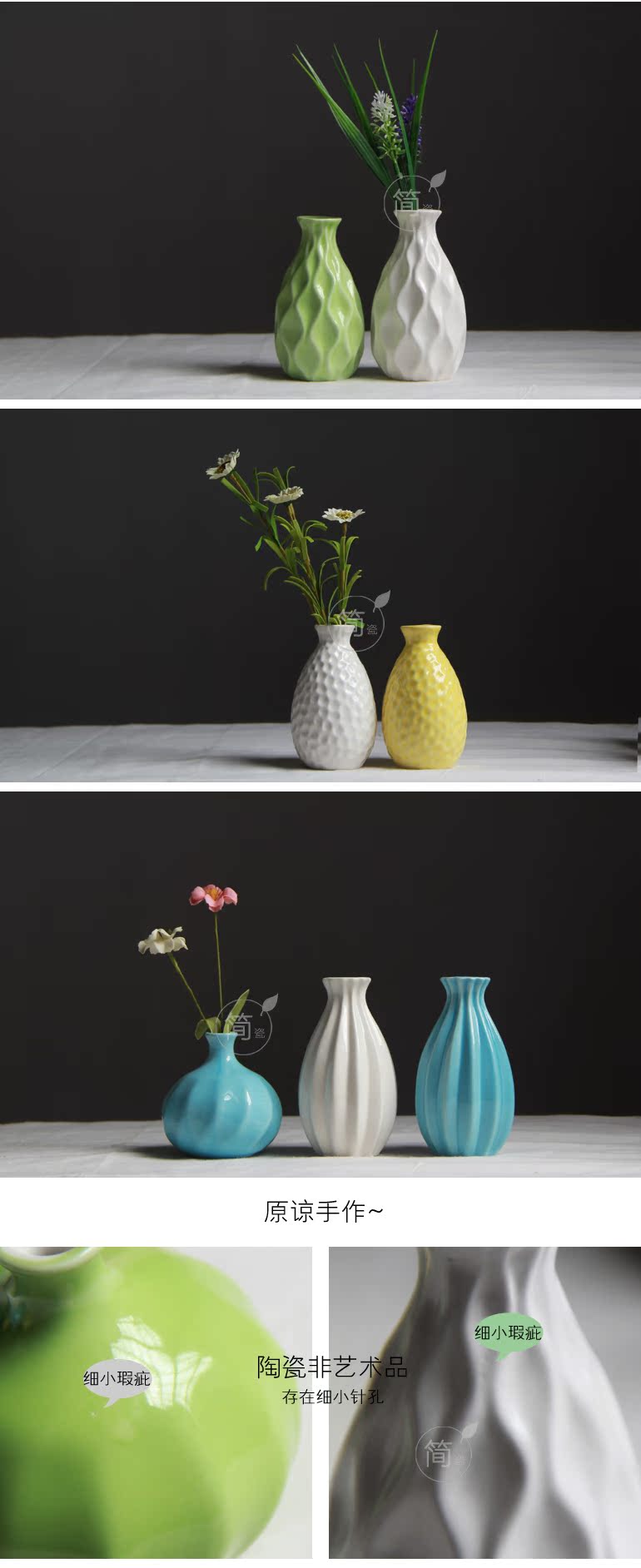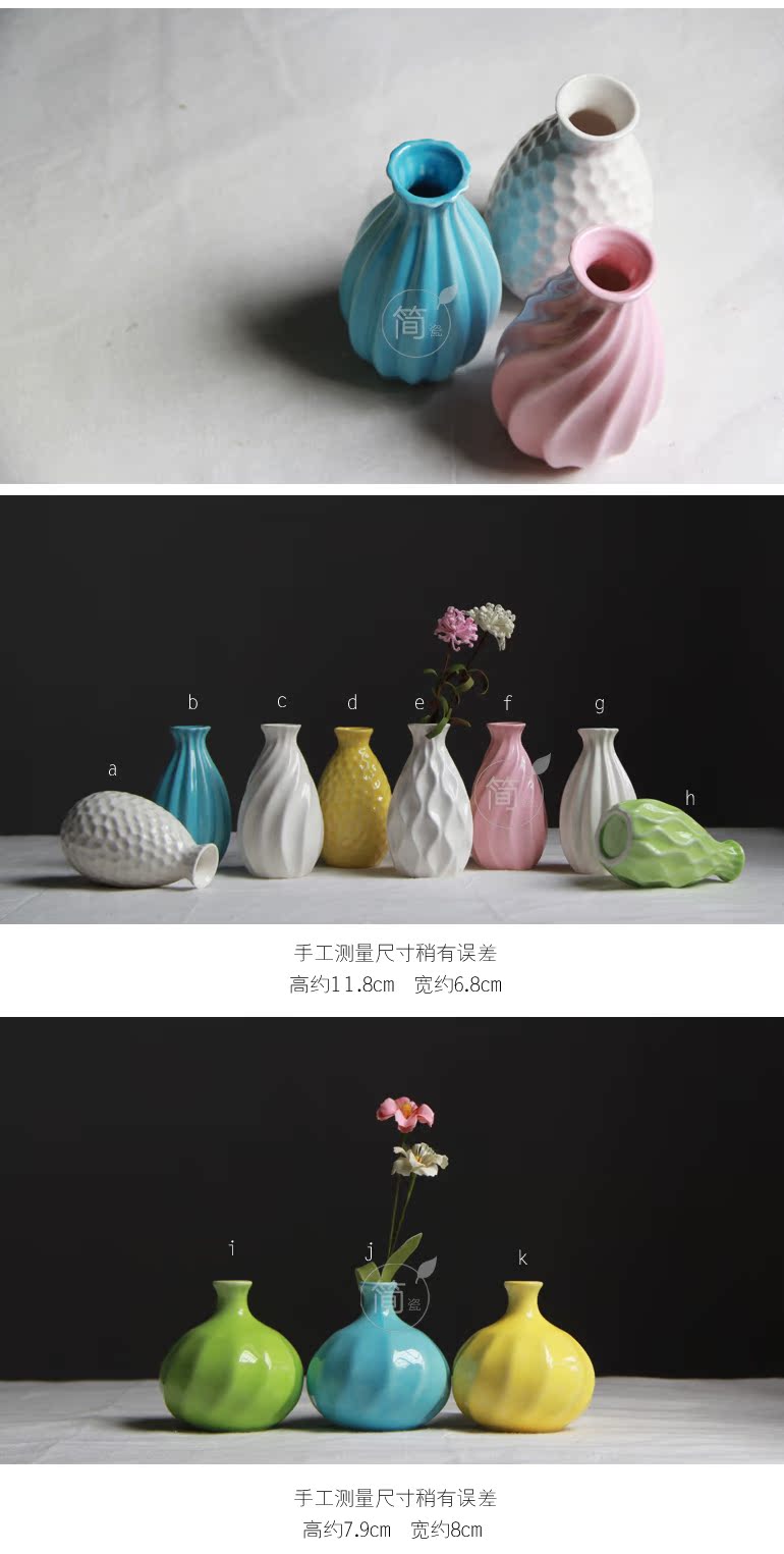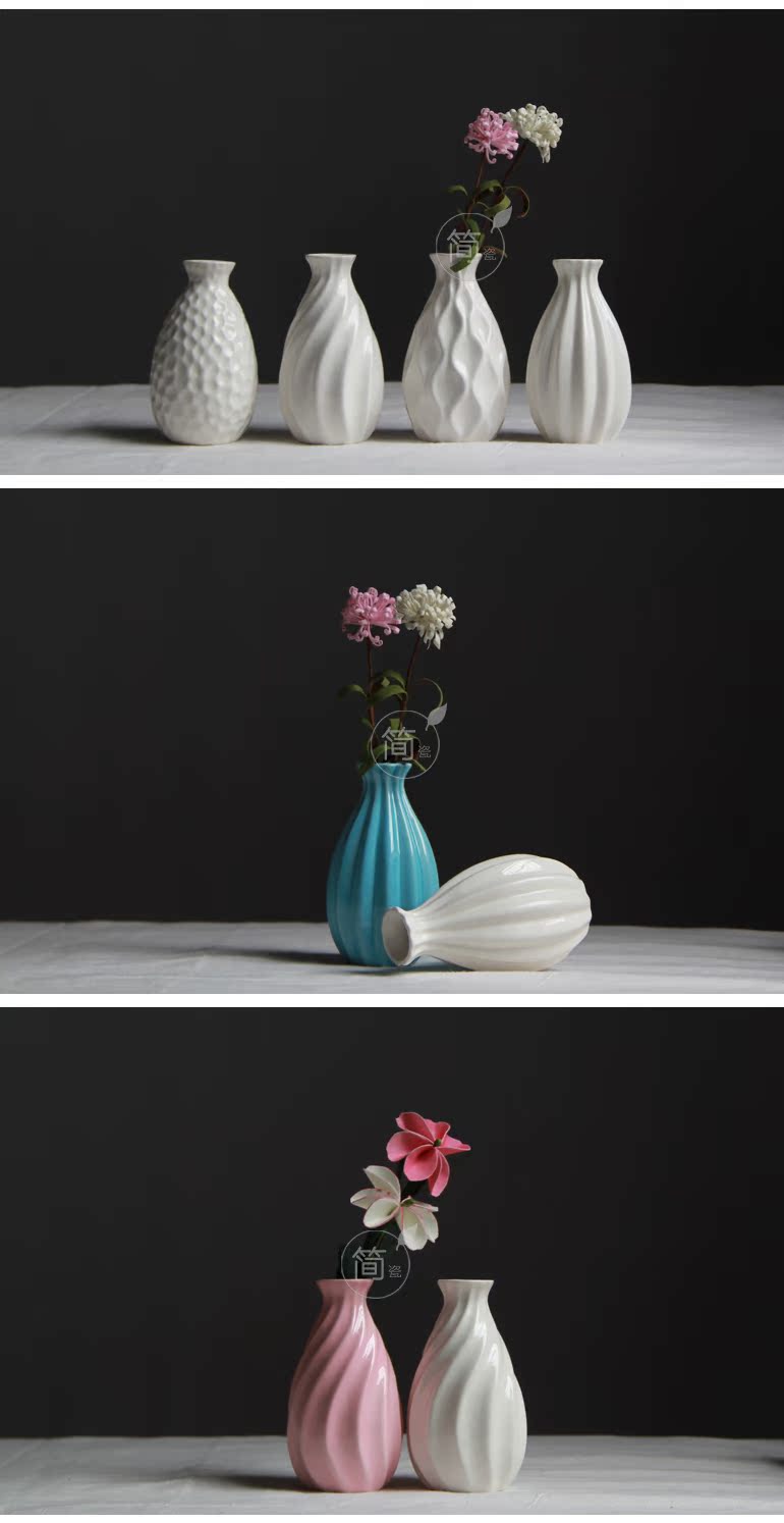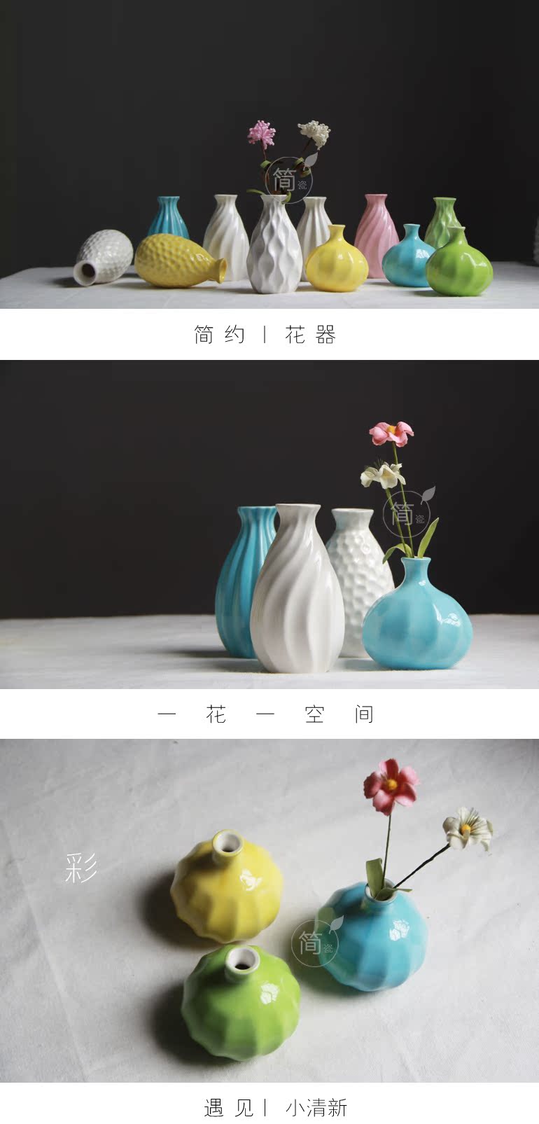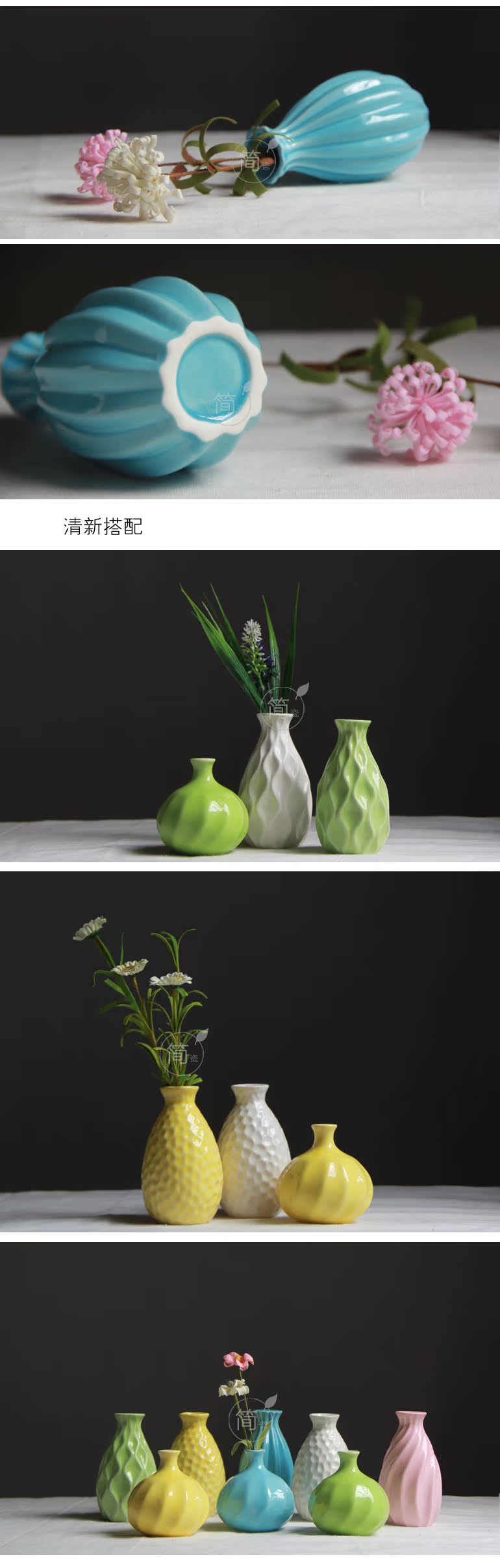 a迷你小花器 現代簡約陶瓷花瓶擺件 藍色套裝干花花插 客廳軟裝飾
