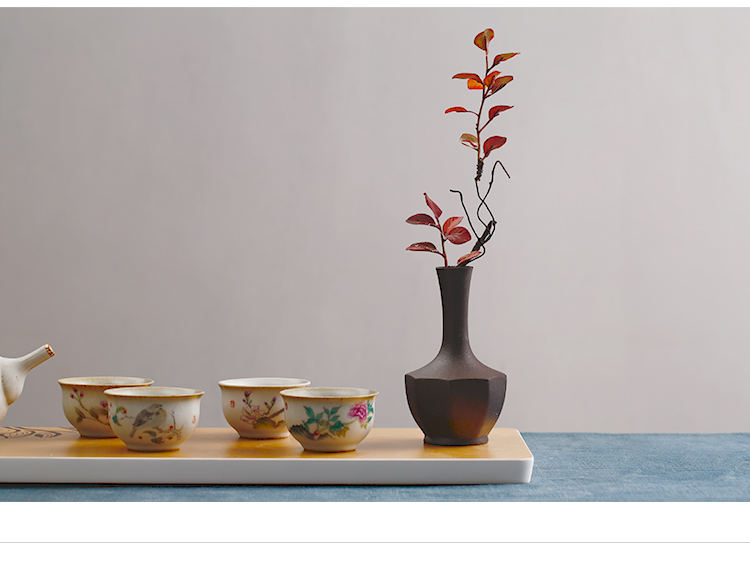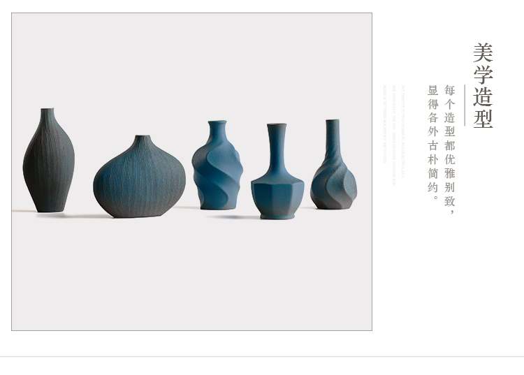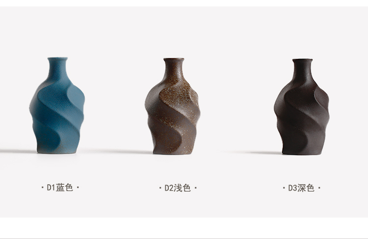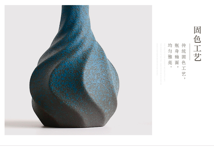 A1藍色品道家日式粗陶花瓶 復古簡約陶瓷花插花器 茶席小花瓶茶臺擺件