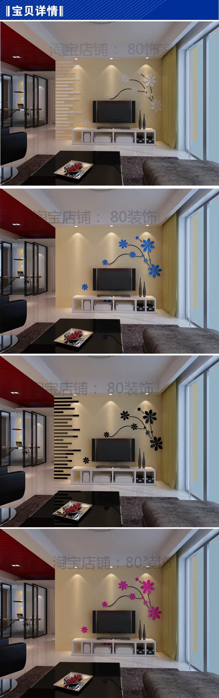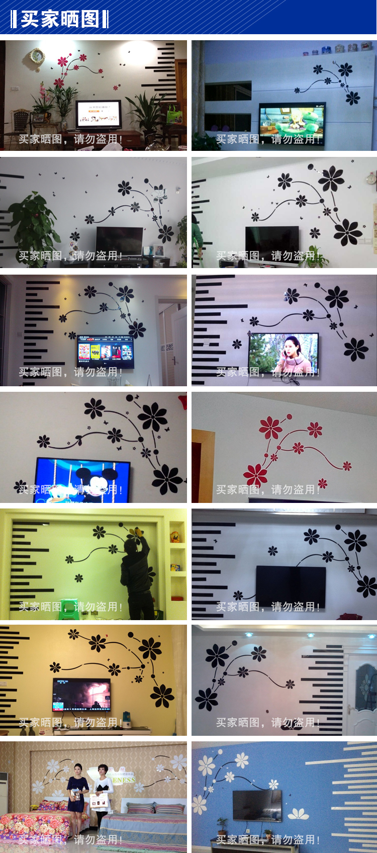 384櫻花飛舞-全黑色-不帶橫條左小櫻花飛舞亞克力3d立體墻紙貼畫客廳沙發電視背景墻裝飾自粘裝飾品