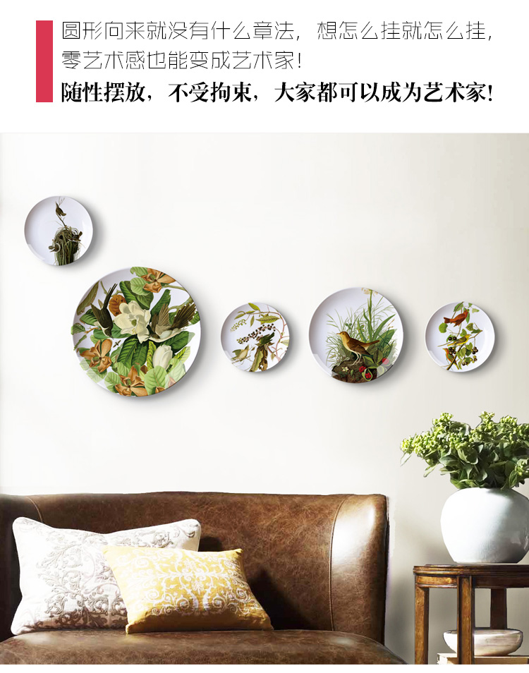 10盤-組合款B美式鄉村裝飾掛盤墻飾陶瓷壁飾客廳背景墻組合掛飾墻上裝飾掛件