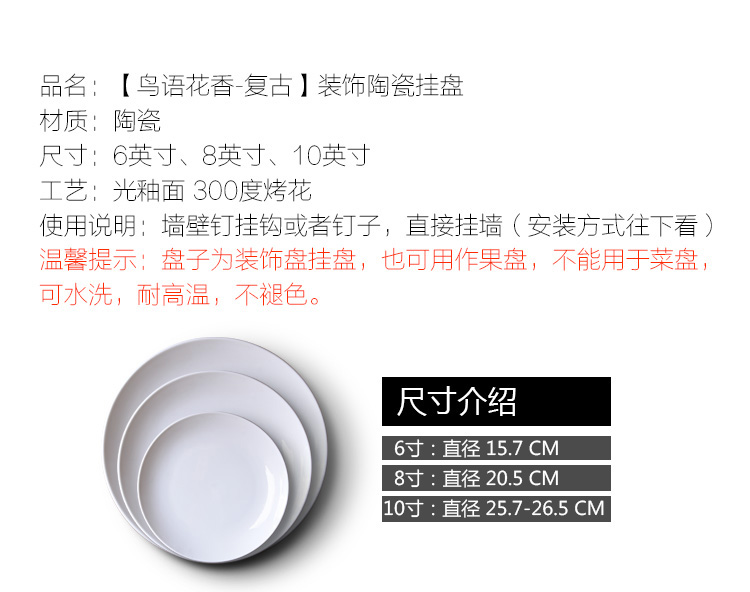 10英寸-留言編號復古美式 裝飾掛盤墻飾陶瓷壁飾客廳背景墻組合掛飾墻上裝飾掛件