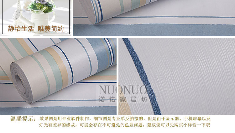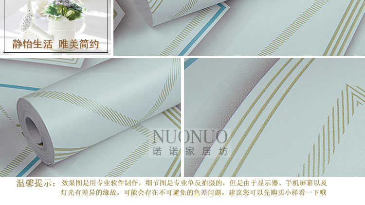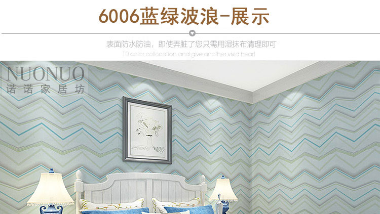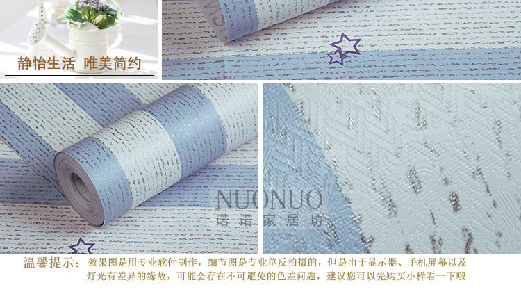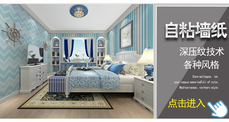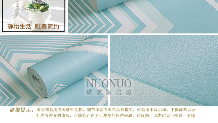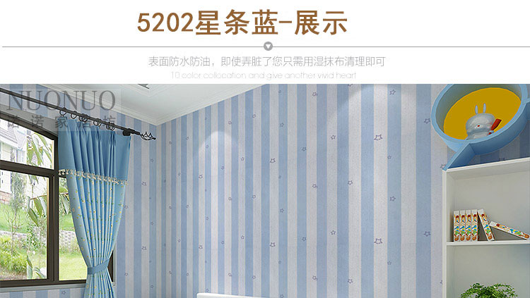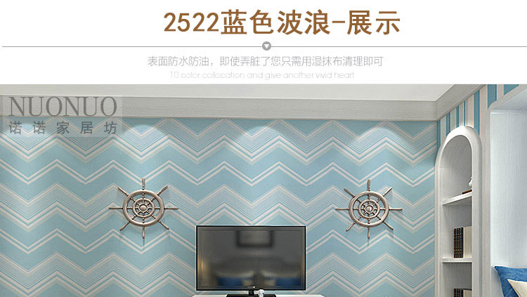 10米P2522藍色波浪E超大PVC宿舍墻紙臥室簡約家具 自粘背景墻客廳條紋純色創意墻貼