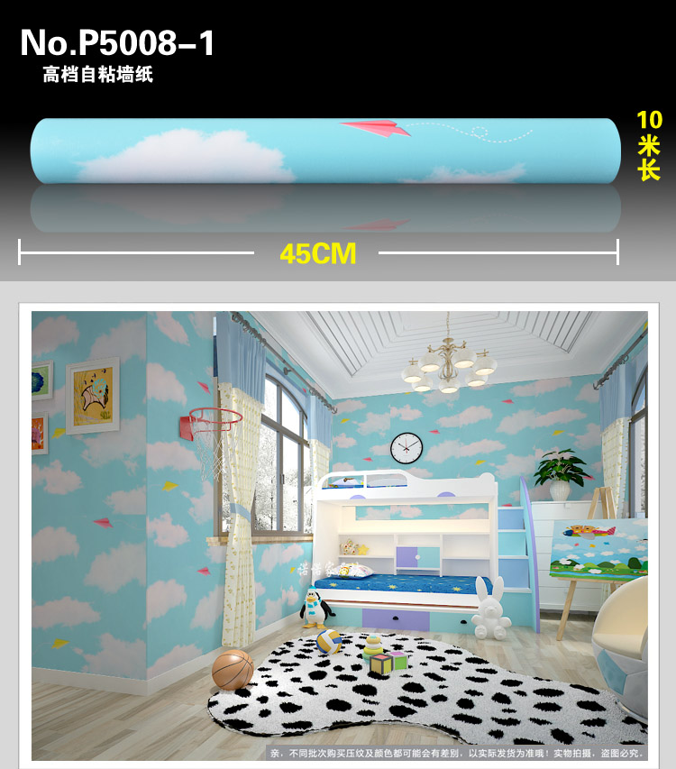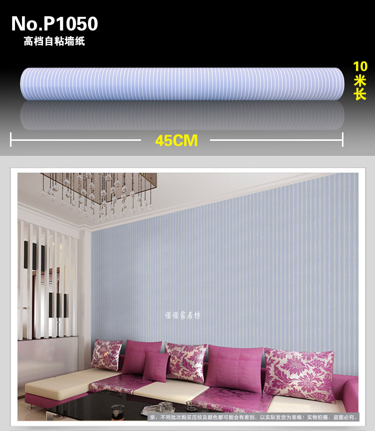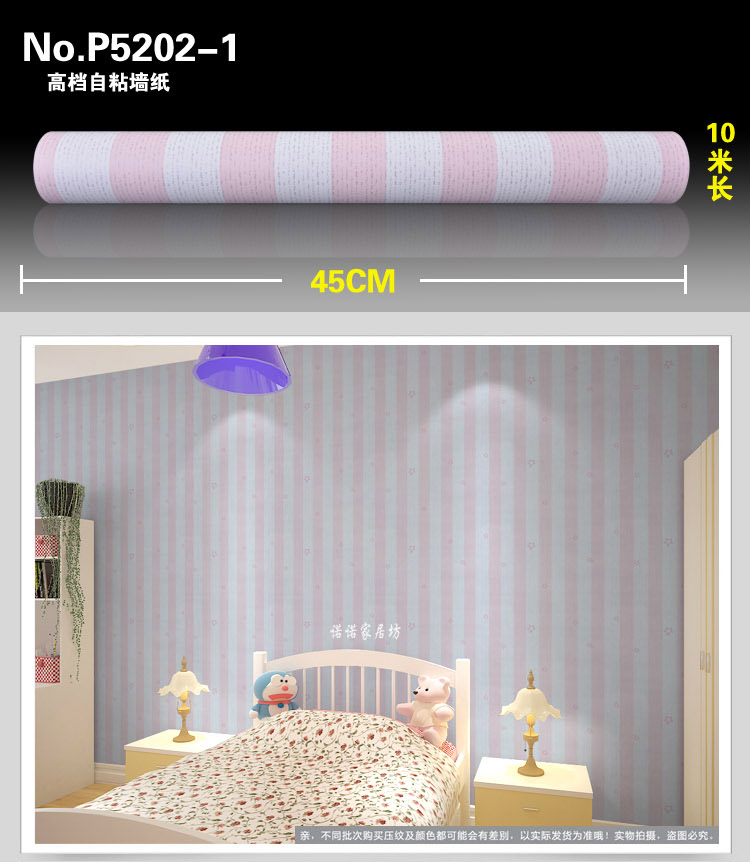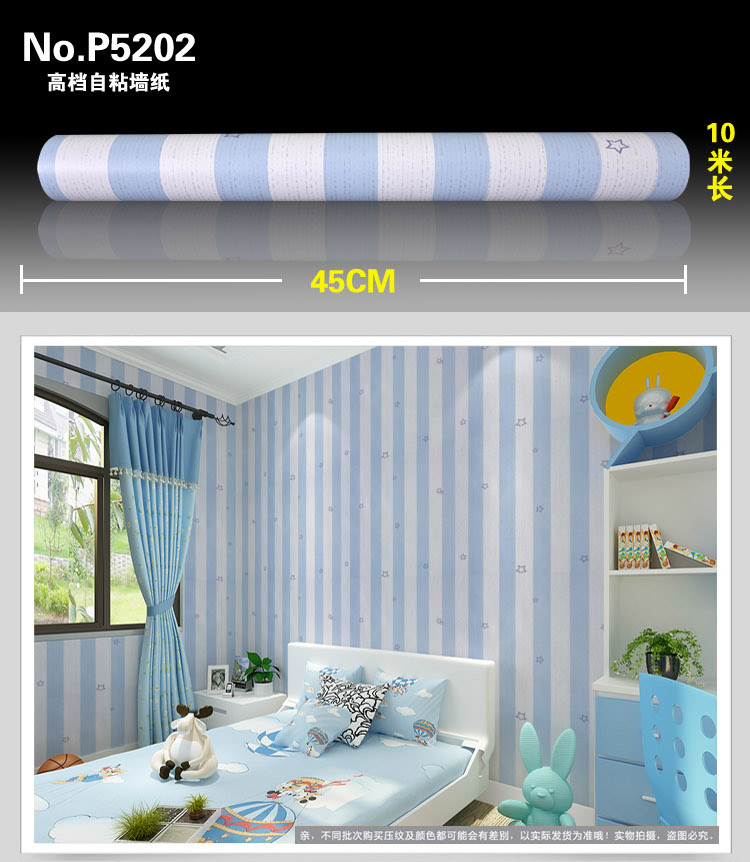 10米P1502-1超大PVC自粘墻紙壁紙 地中海現代簡約北歐式田園客廳背景臥室兒童條紋