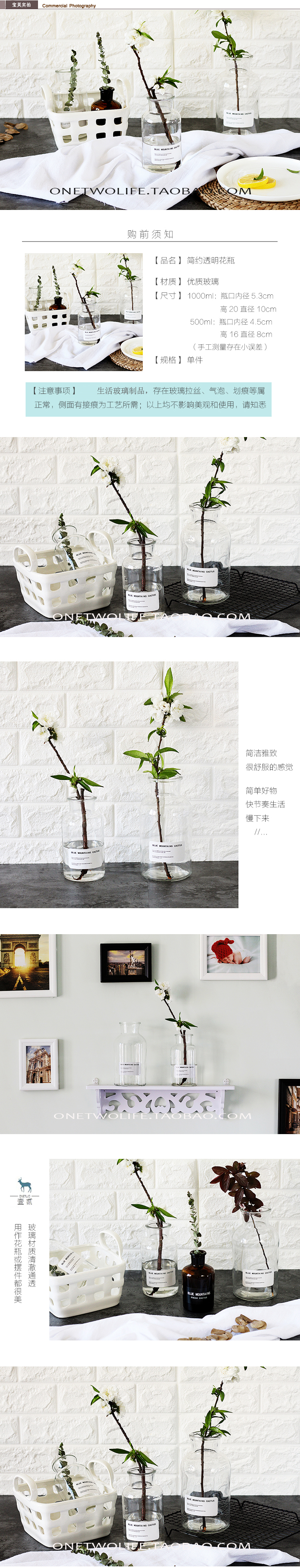 1000ML透明大口花瓶ins大熱貼紙透明玻璃花瓶 家居軟裝臺面花瓶花器拍攝道具插花擺件