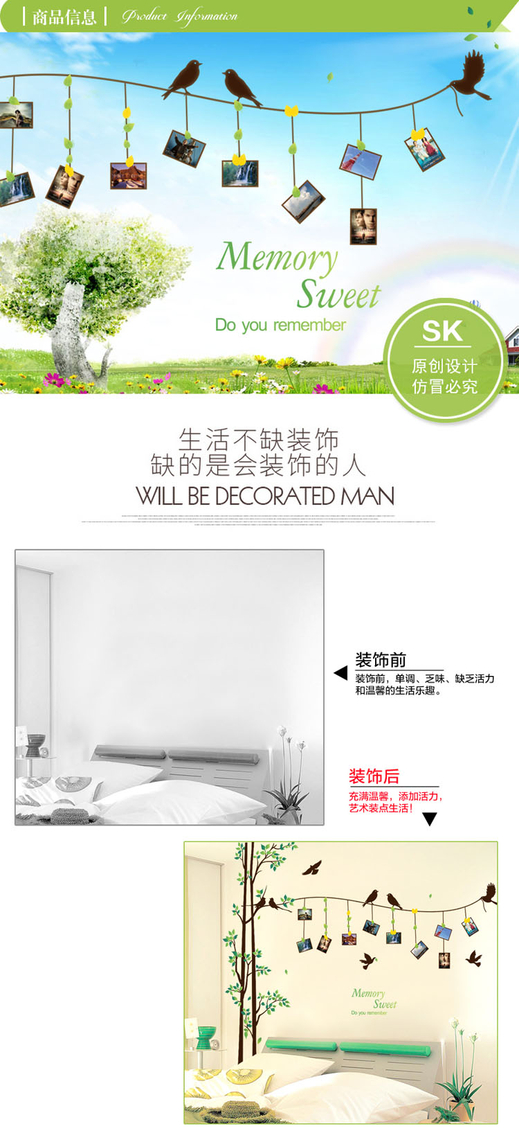 大樹照片墻超大墻貼可移除 大樹照片墻相片貼 客廳電視背景墻裝飾貼畫