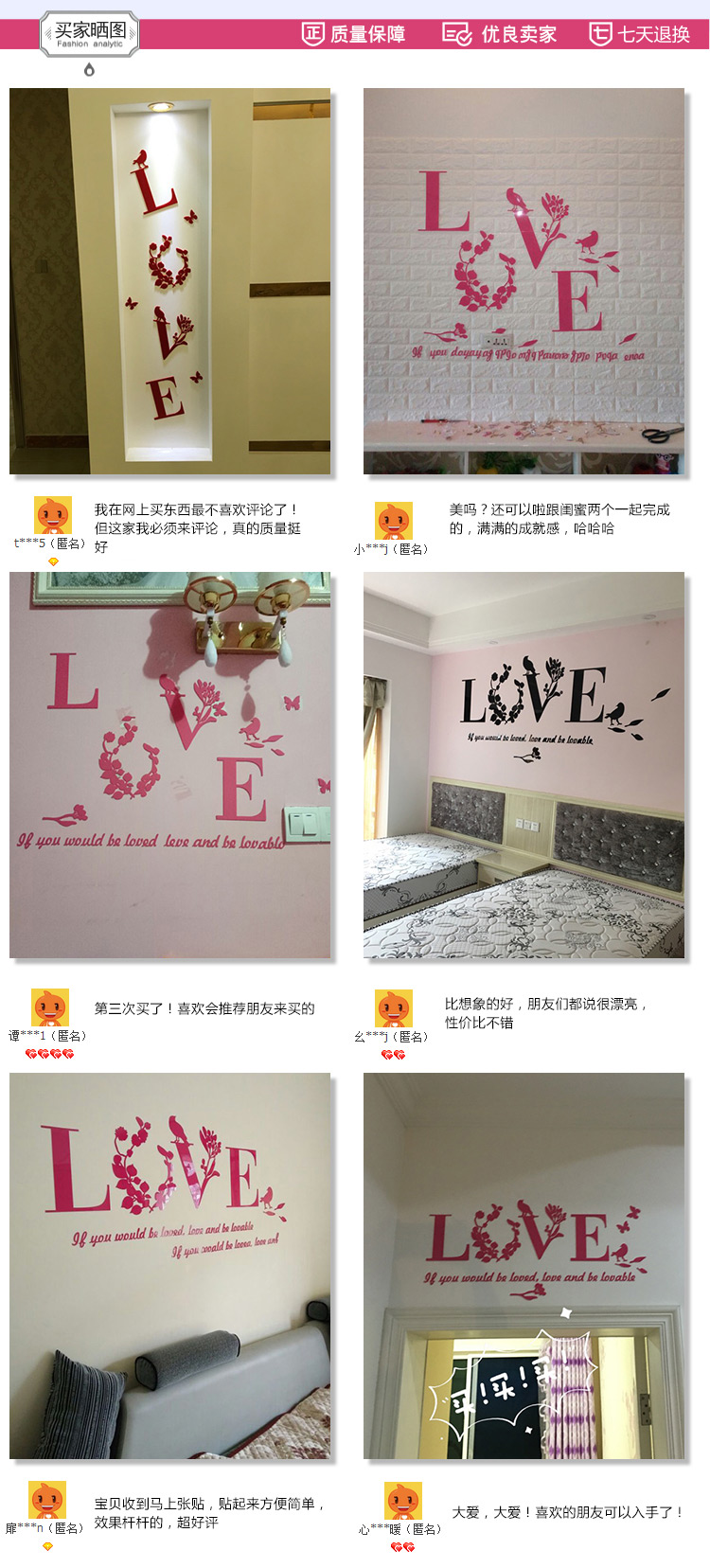 003新LOVE-粉紅-橫版小love亞克力3d立體墻貼畫客廳電視背景墻貼紙臥室床頭溫馨婚房裝飾