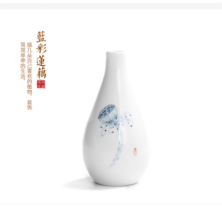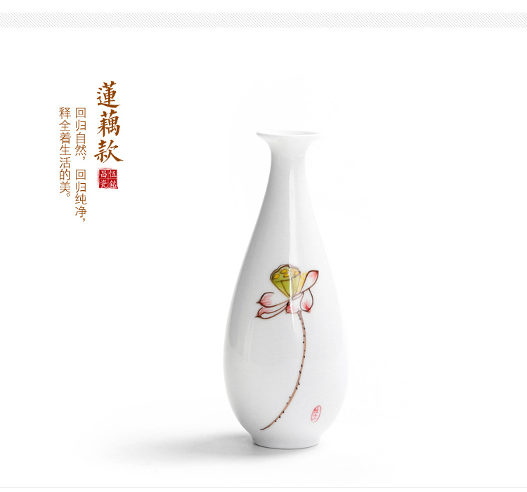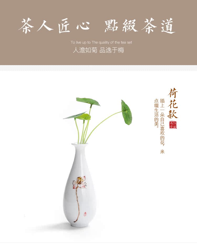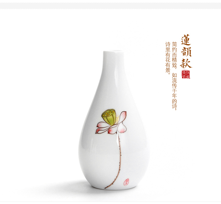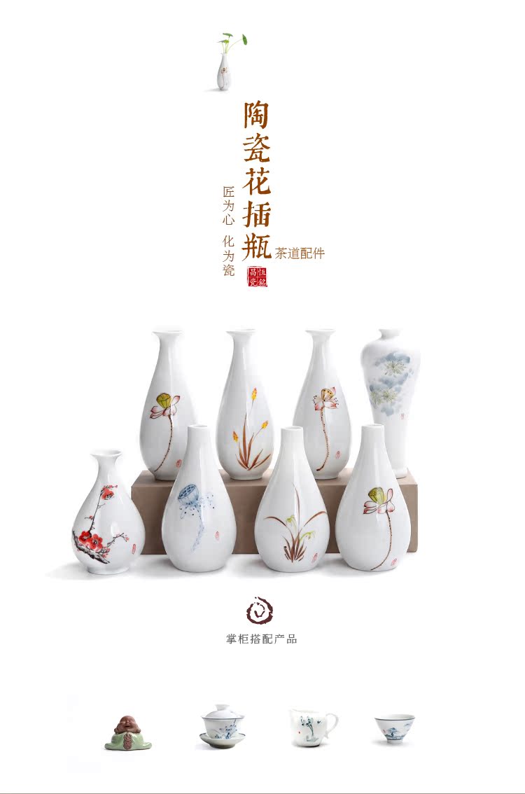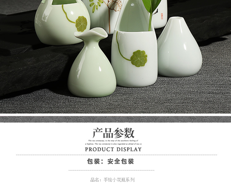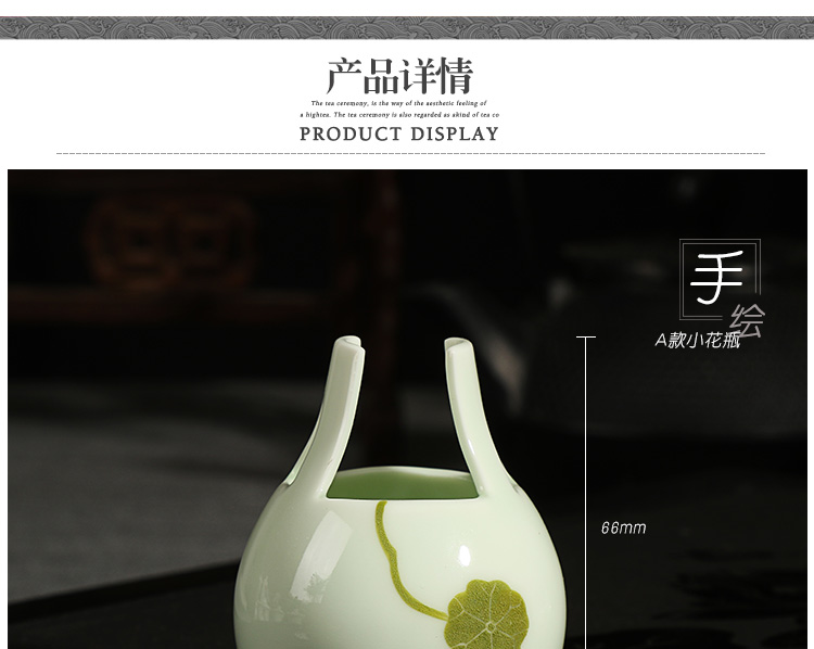 金鑲玉花瓶景德鎮陶瓷花插 瓷器水培小花瓶手繪迷你花器 銅錢草茶道禪意擺件