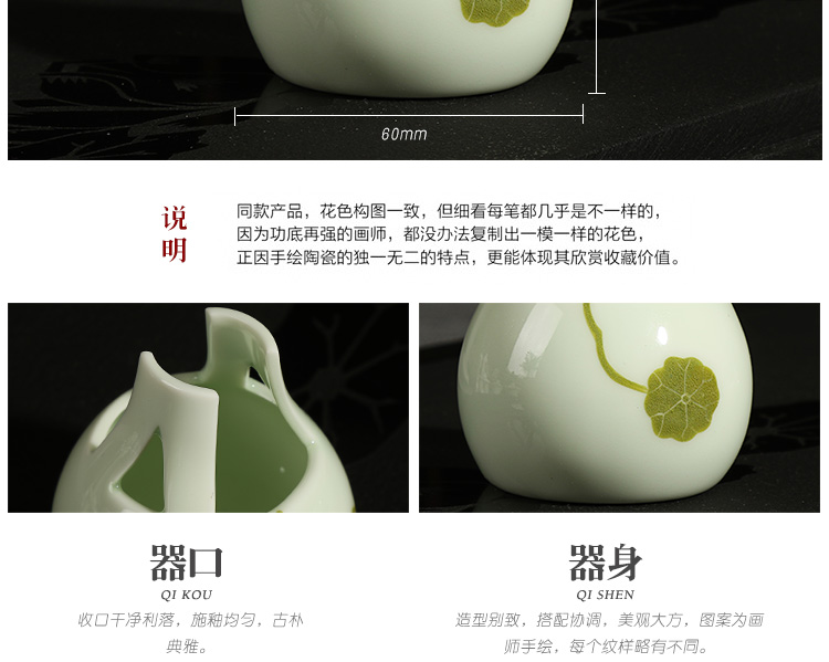 荷葉花器(小號哥窯梅子青冰裂)龍泉青瓷花瓶擺件客廳插花陶瓷水培容器綠蘿現代簡約家居創意裝飾