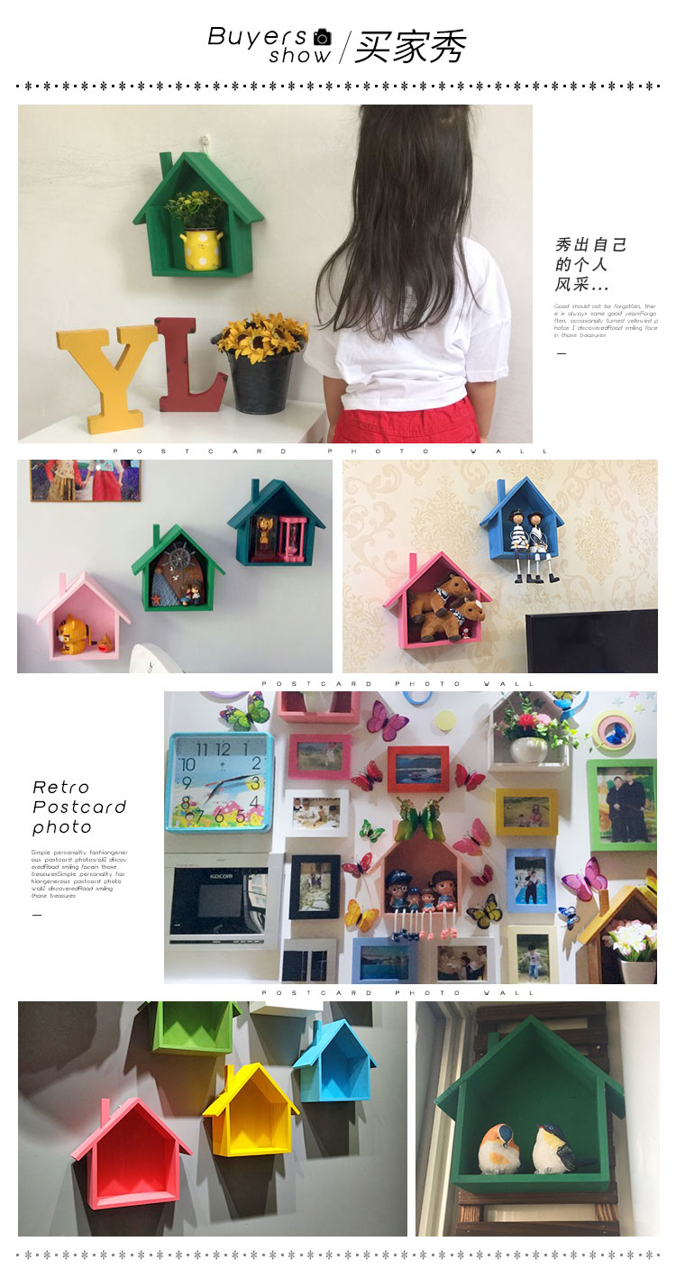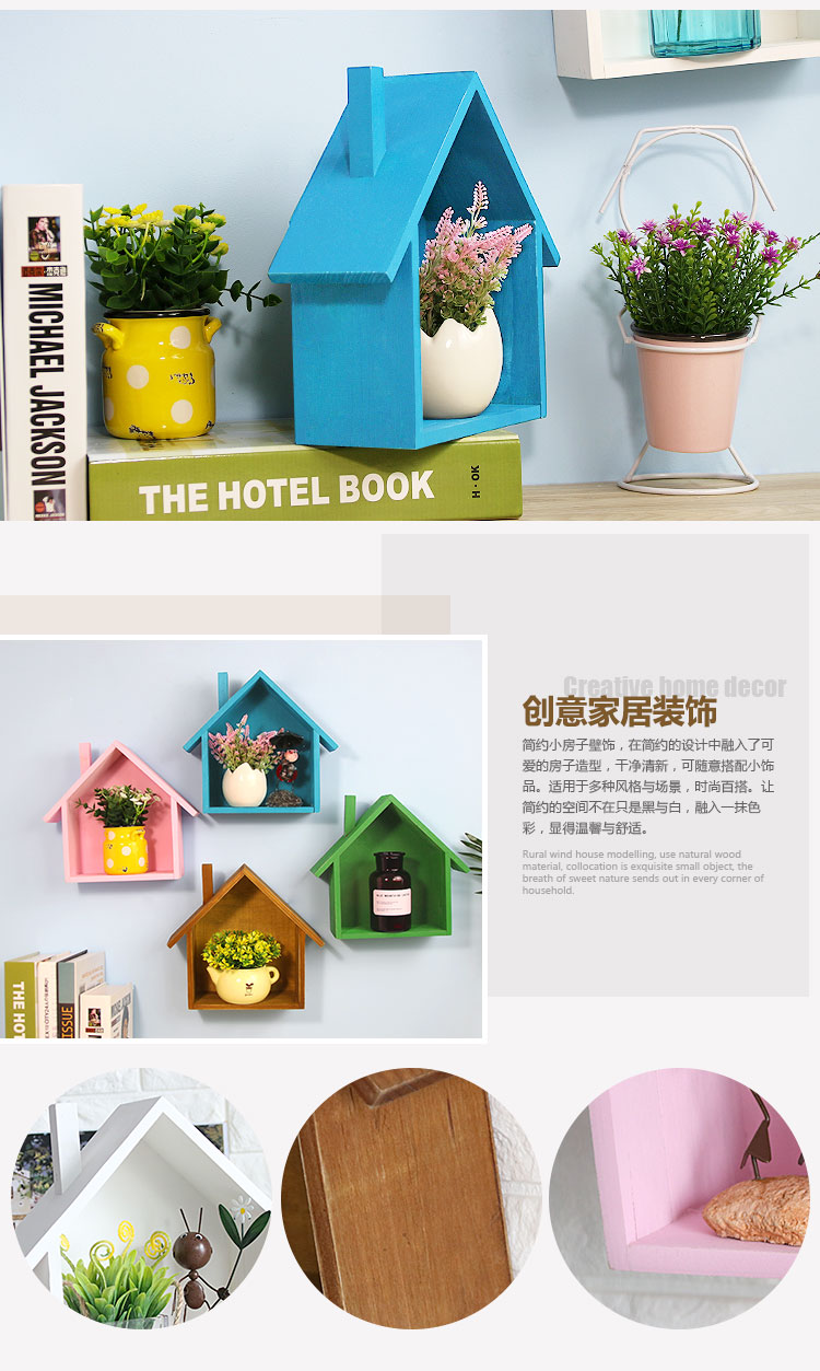 001 棕色小木屋復古小房子 墻飾壁掛客廳房屋墻上房間掛件墻面置物架 墻壁裝飾品