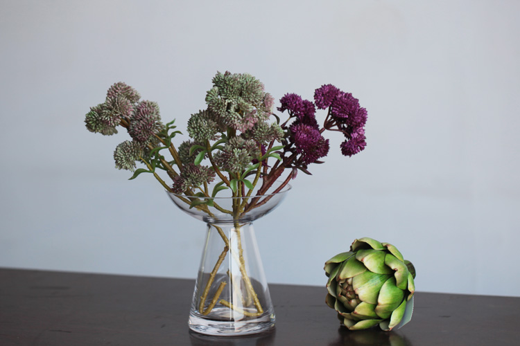 朝鮮薊被譽為地中海之花,是地中海的象征。朝鮮薊花蕾形態優美,裝飾性強,是美式鄉村風格經常使用的素材,玻璃罐,果盤,甚至破舊的木盒具朝鮮薊都有著良好的呼應。