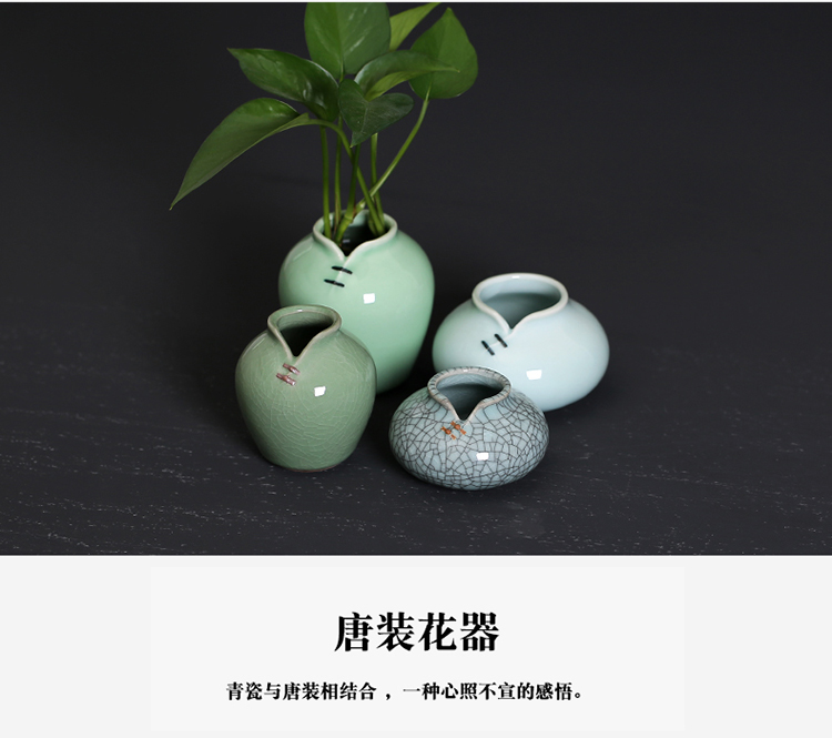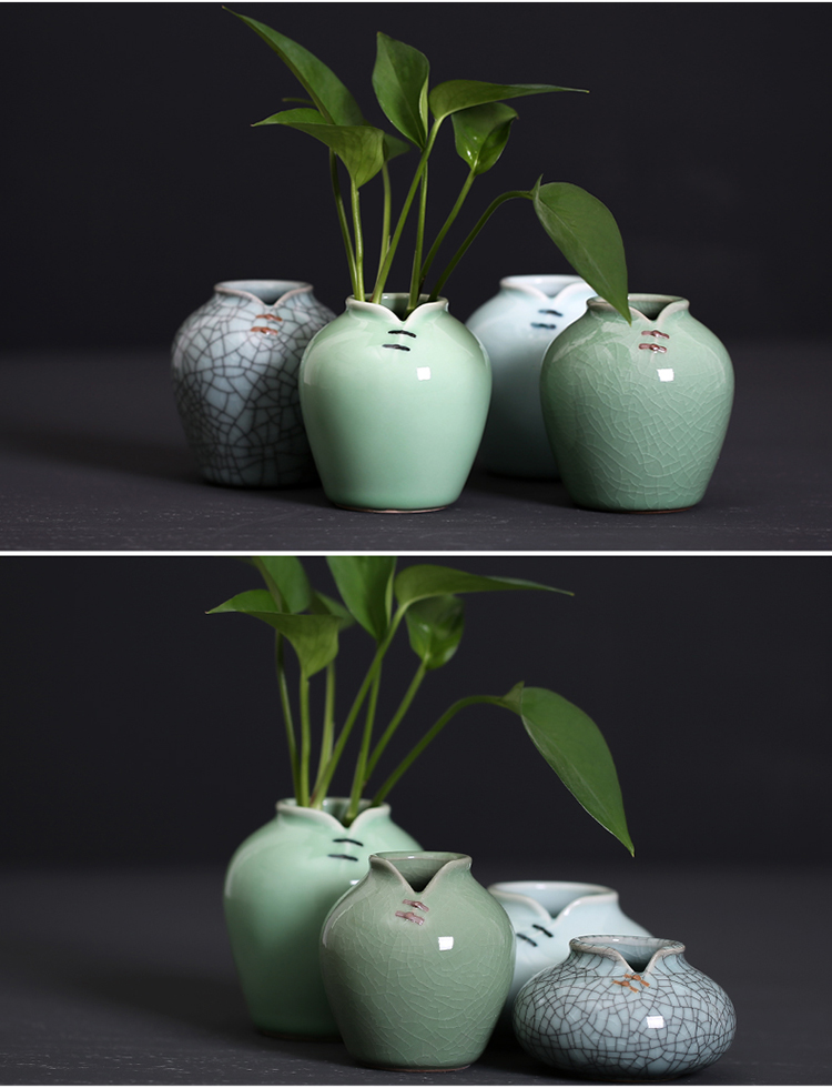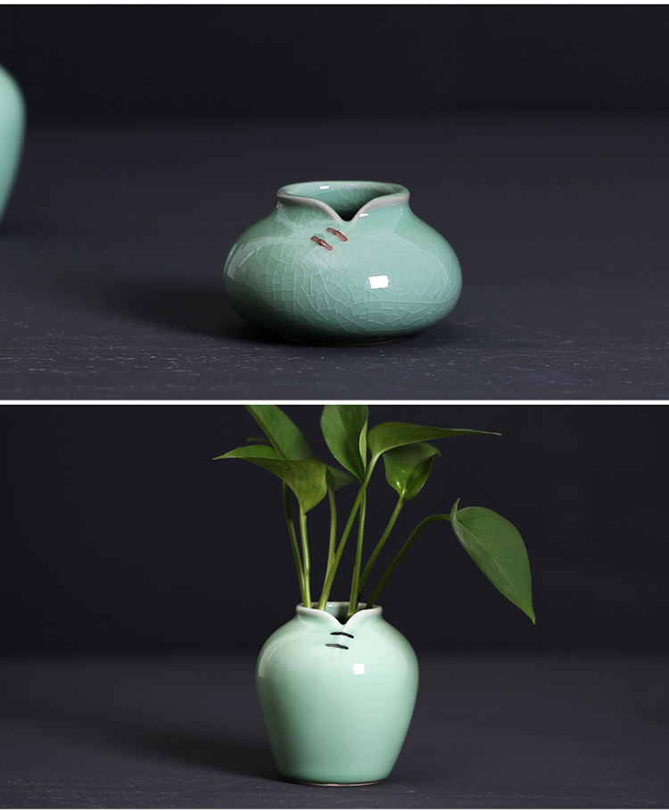 荷葉花器(小號哥窯梅子青冰裂)龍泉青瓷花瓶擺件客廳插花陶瓷水培容器綠蘿現代簡約家居創意裝飾
