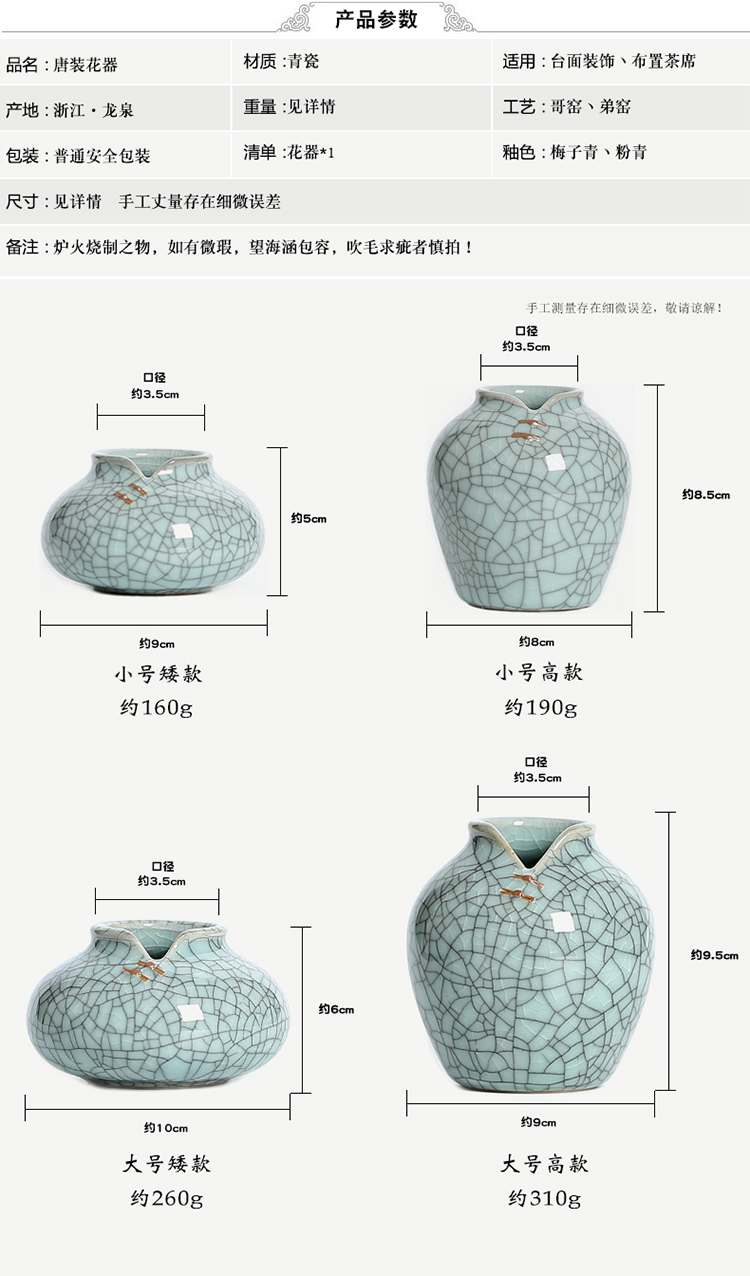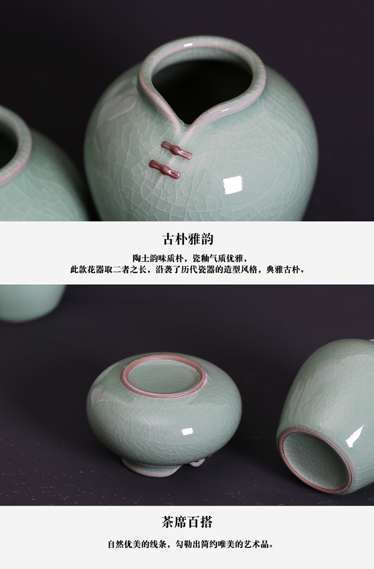 大號矮款哥窯粉青鐵線佛堂居室陶制小號花器 擺件桌面裝飾簡約觀賞古典花瓶花器
