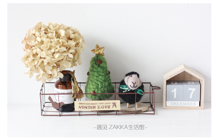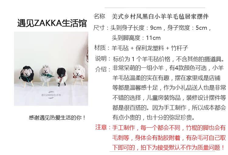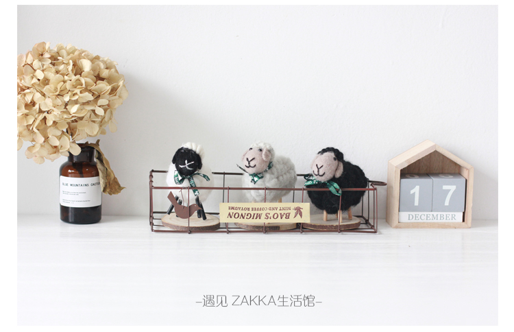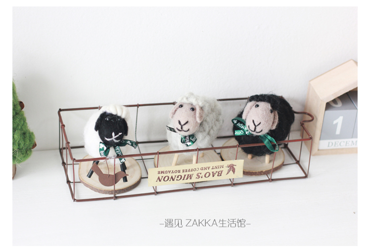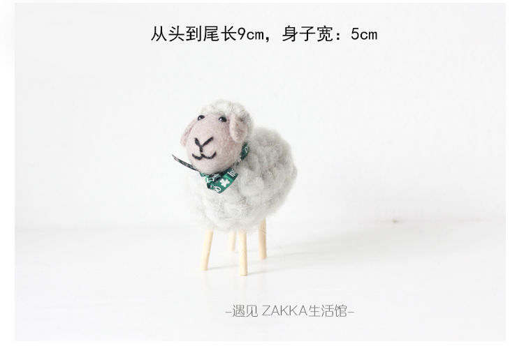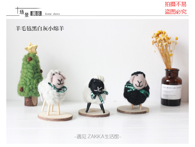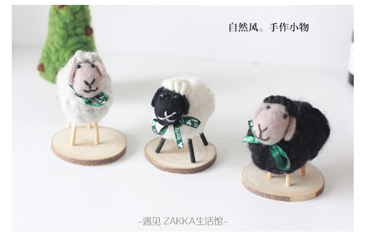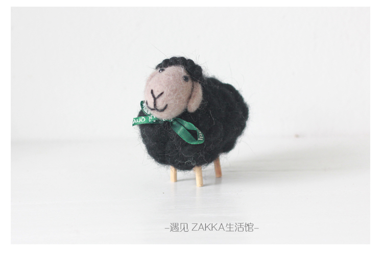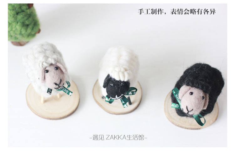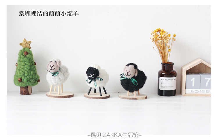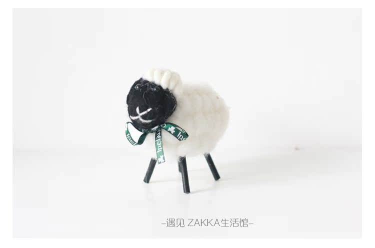 白色小綿羊(絲帶是綠色沒圖案)森系羊毛氈黑白小綿羊擺件居家咖啡館裝飾軟裝擺拍道具