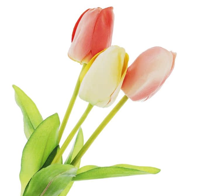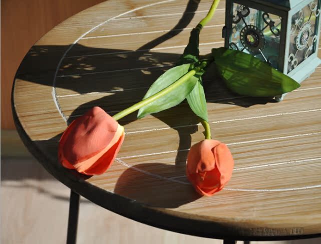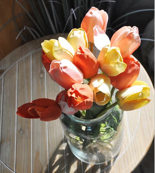 桔紅色仿真花卉三色郁金香花 櫥窗樣板間家居飾品客廳餐桌茶幾花藝擺花