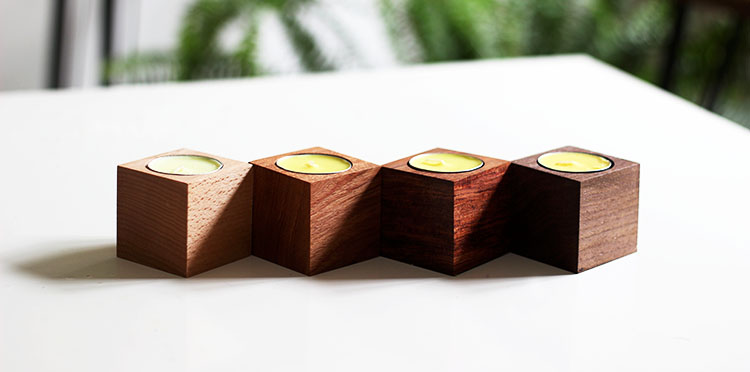 黑胡桃木【魔方燭臺】實木簡約創意蠟燭杯香薰新婚禮品浪漫擺件餐桌家居