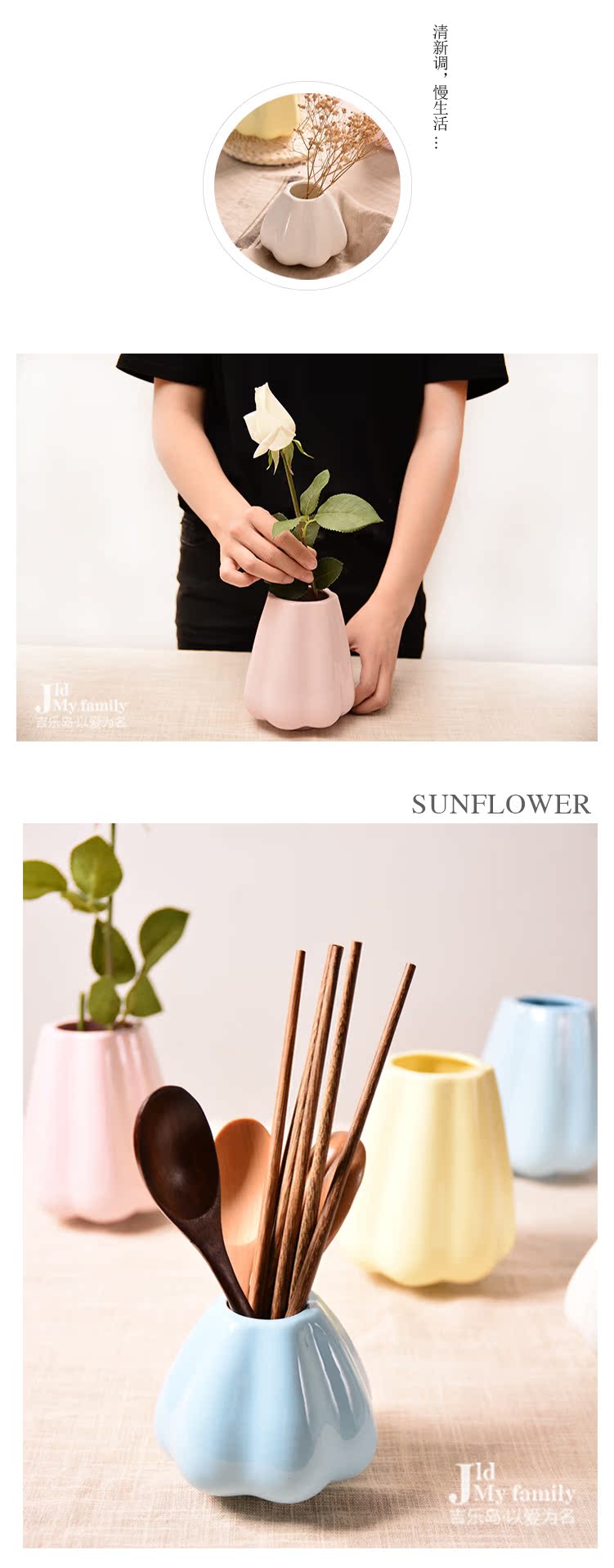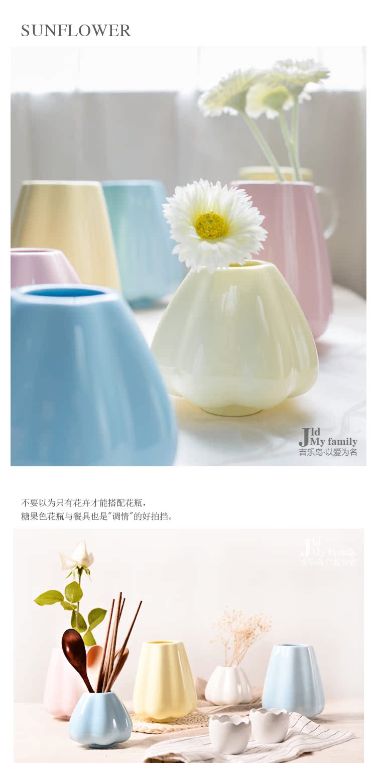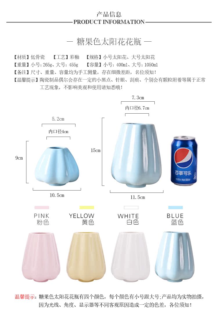 大號粉色花瓶 創意陶瓷糖果色太陽花花瓶 家居小清新水培插花擺件小花瓶子