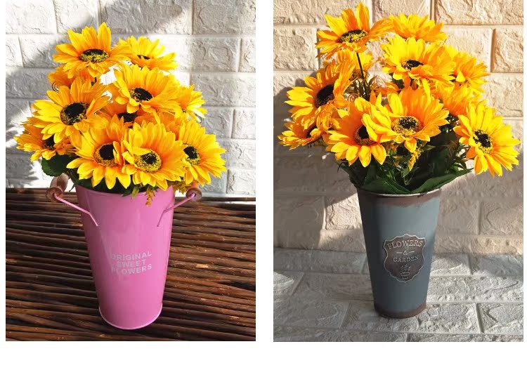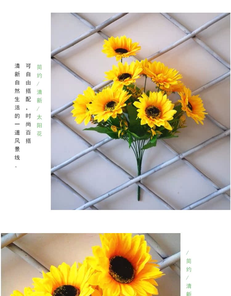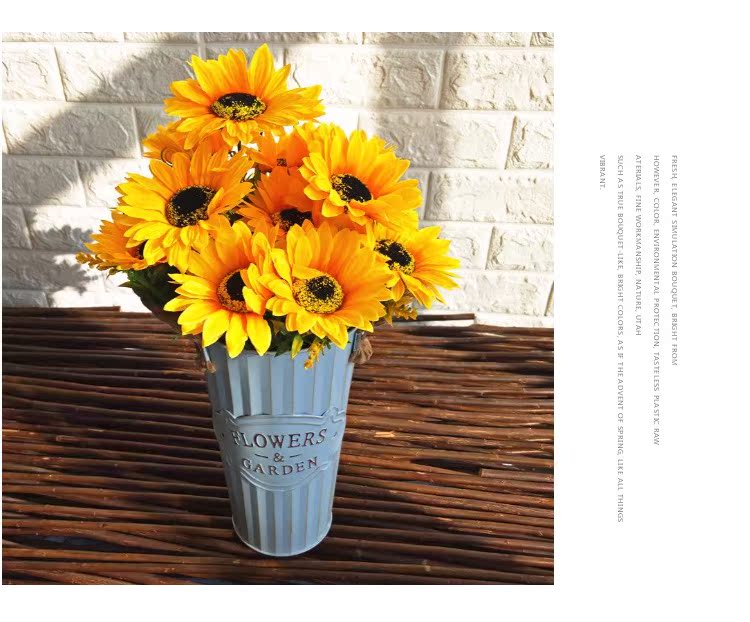 金色新年熱賣仿真太陽花假花向日葵歐式室內桌面擺件絹花塑料婚慶裝飾