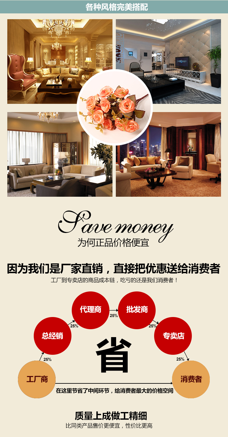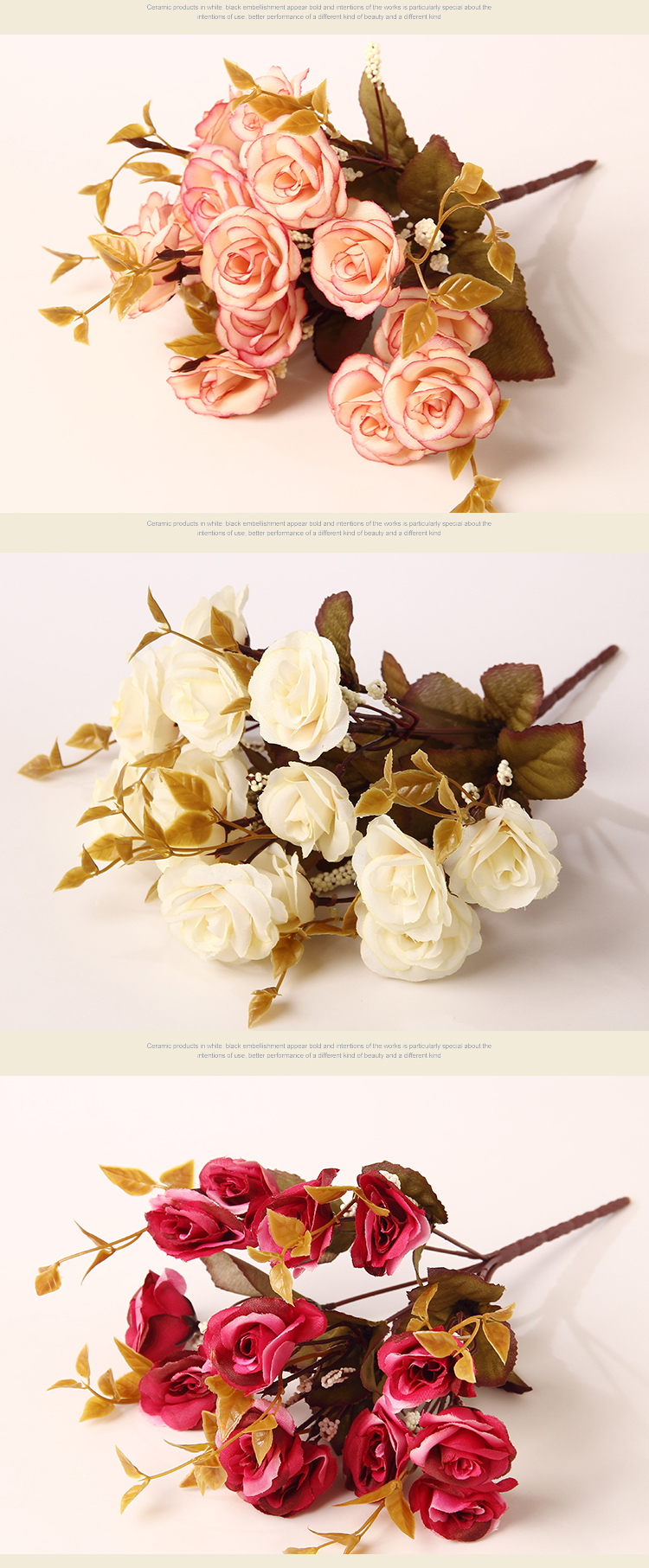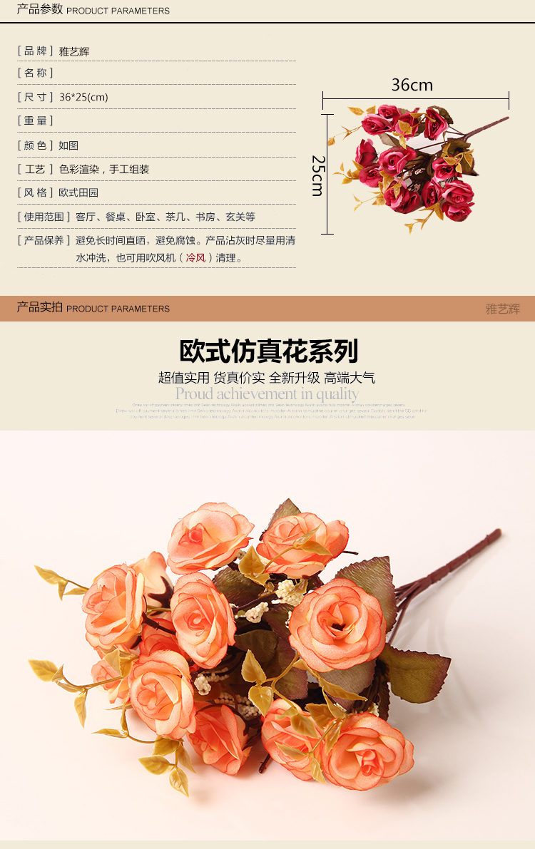 桔色高品質客廳餐桌裝飾仿真花卉絹布干花瓶整體套裝假花藝小朵碎