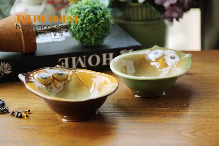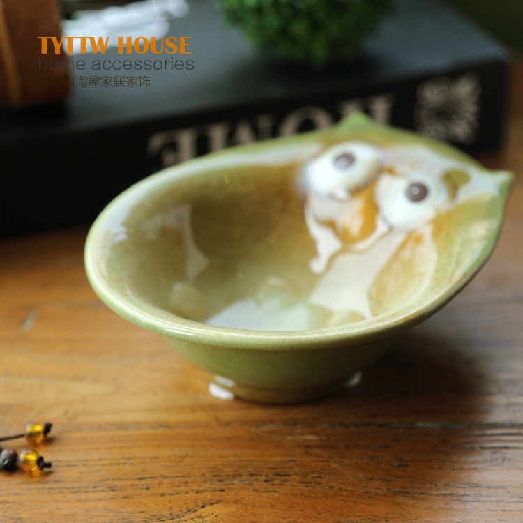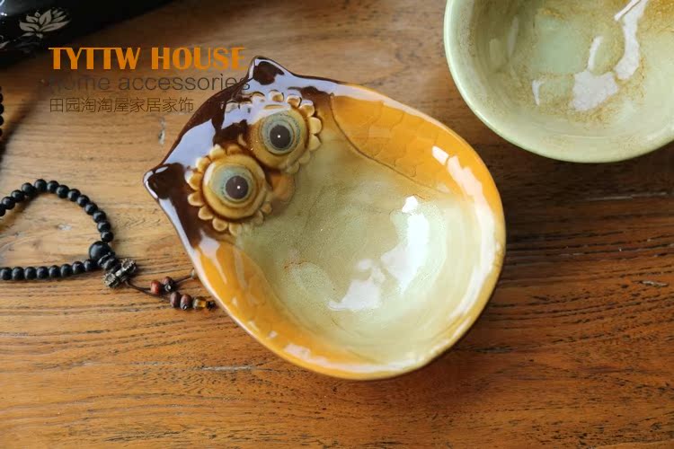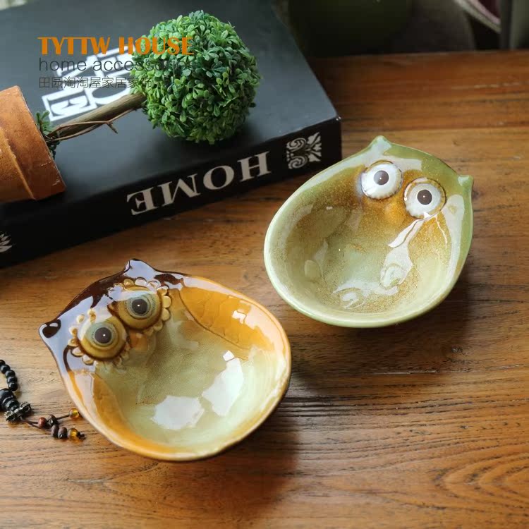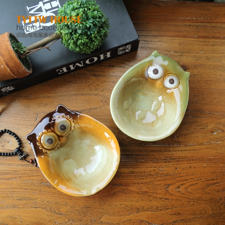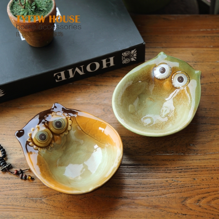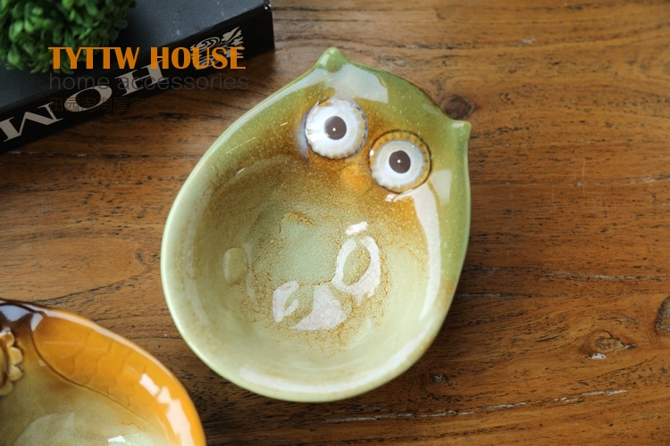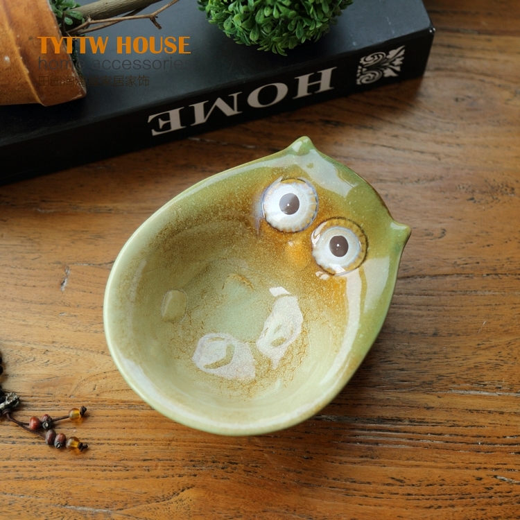 高溫彩色貓頭鷹陶瓷碟擺設裝飾堅果盤鑰匙盆肥皂盒煙灰缸擺件