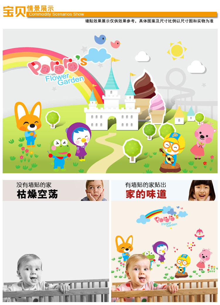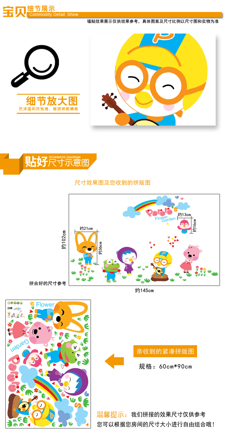 桔色特大可移除兒童房臥室客廳背景墻貼紙 可愛裝飾墻貼畫墻壁貼