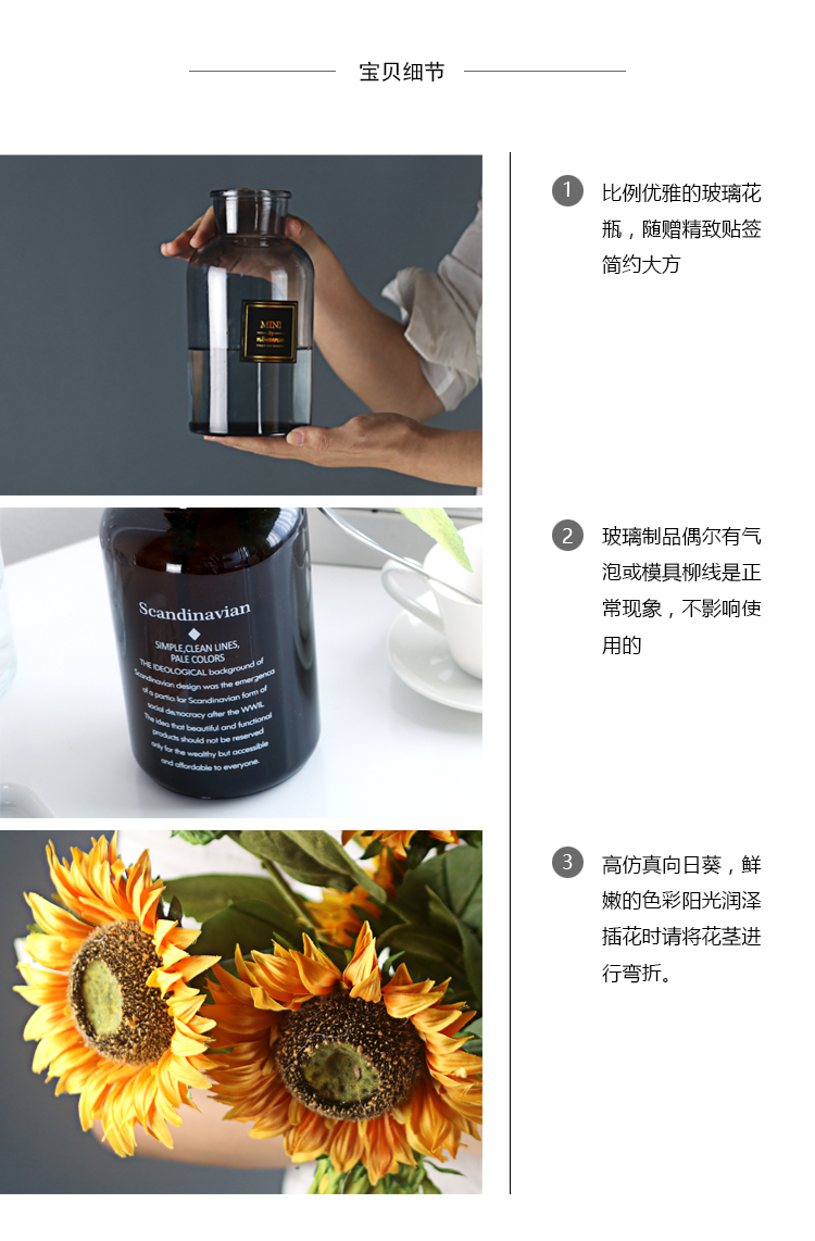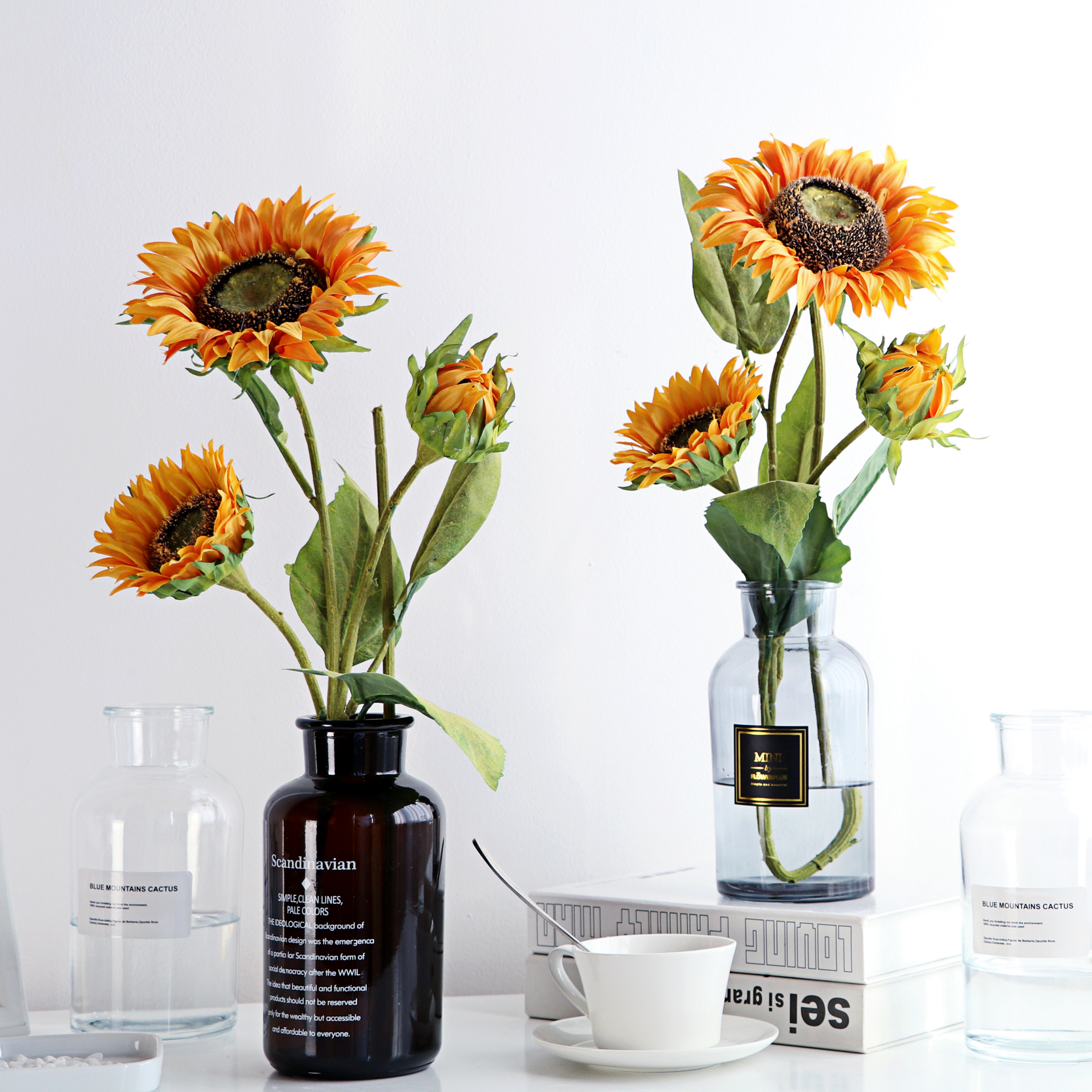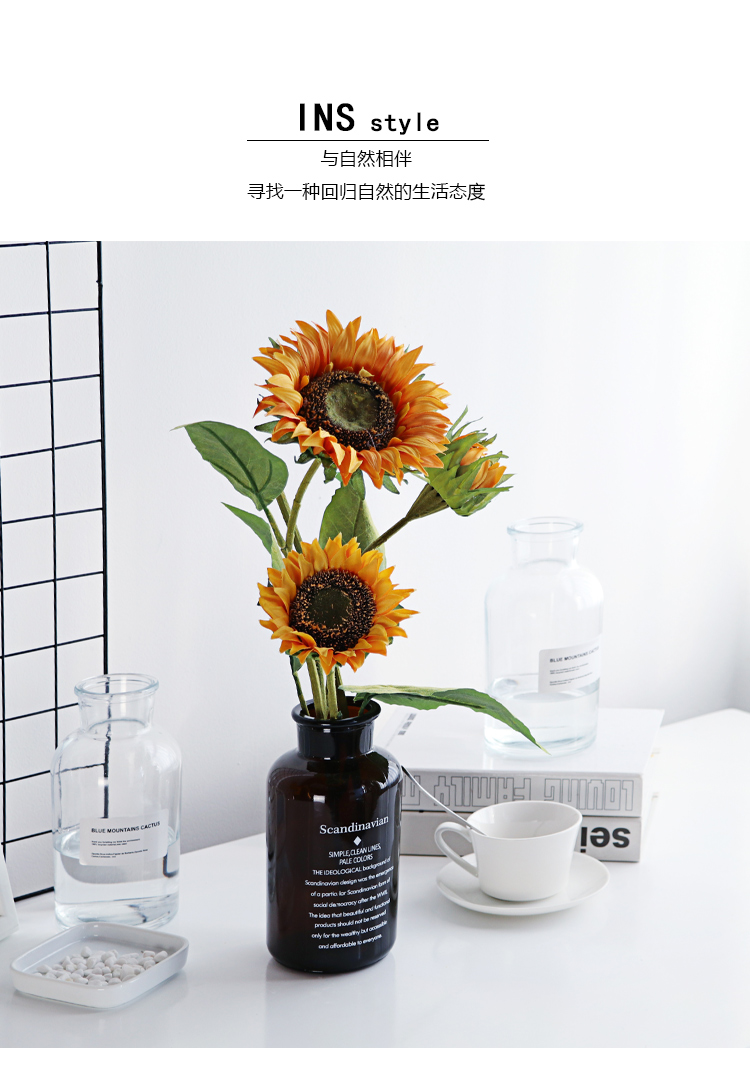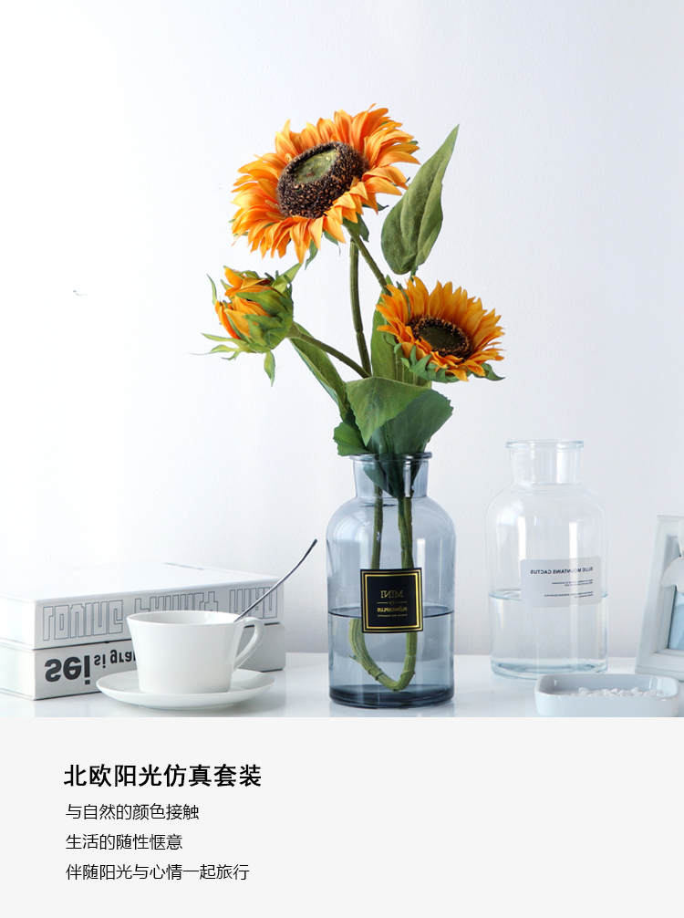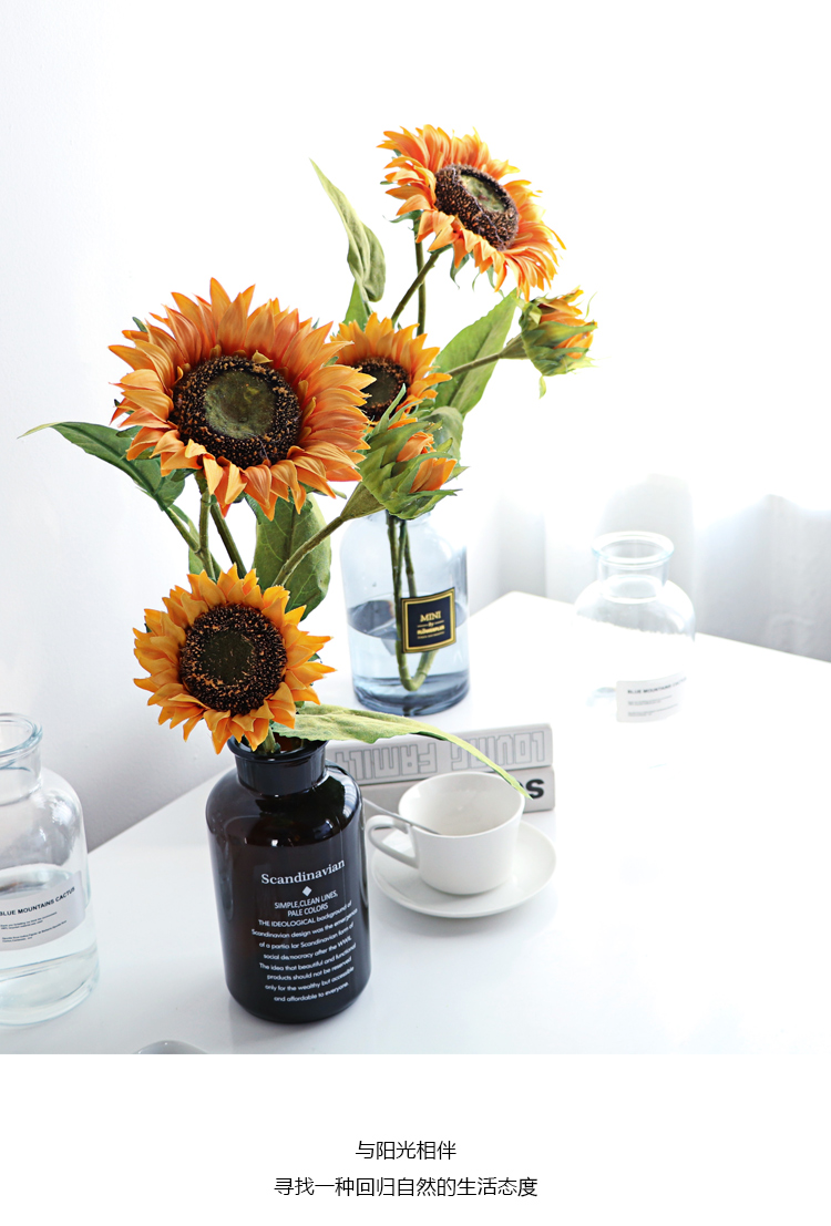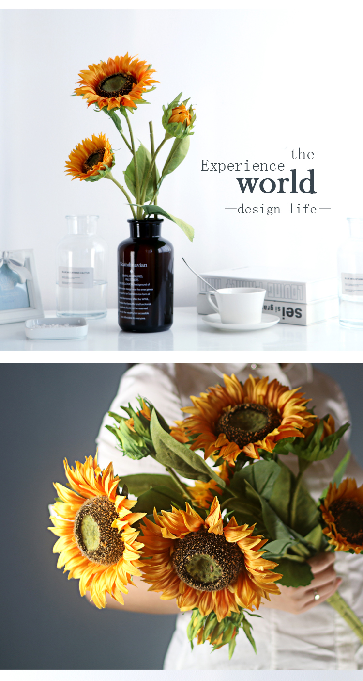 三頭向日葵單購北歐田園向日葵仿真花束假花套裝客廳餐桌餐廳茶幾擺件大套裝花藝