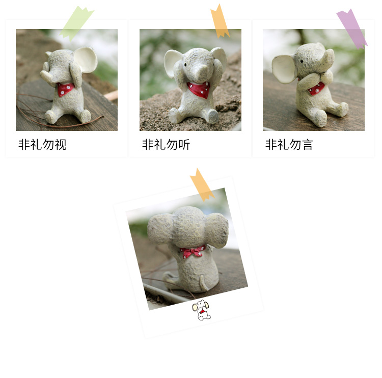 三不仰望天空-小象創意田園仰望天空三不小動物樹脂多肉花盆裝飾擺設擺件禮物