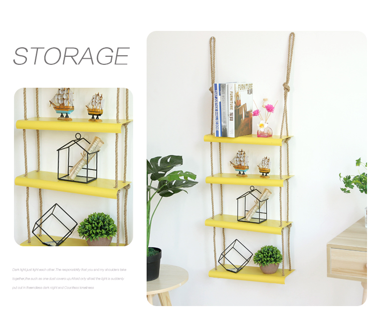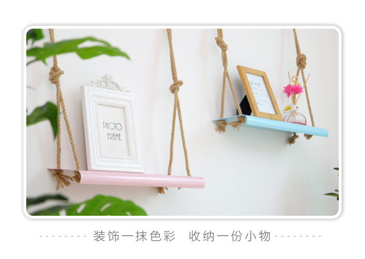 一層 白色+無痕釘墻壁置物架創意簡約懸掛麻繩一字隔板客廳臥室現代墻上裝飾壁掛