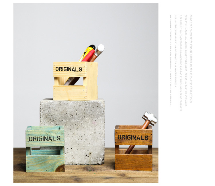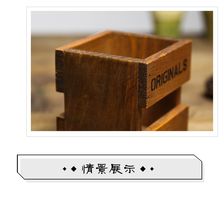 一格筆筒舊木色桌面木質收納盒 復古正方形木盒子擺件 多肉花盆雜物裝飾拼儲物盒