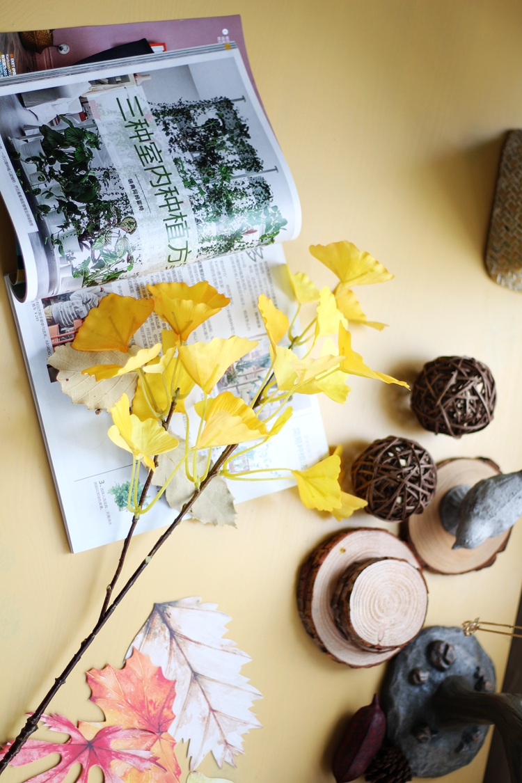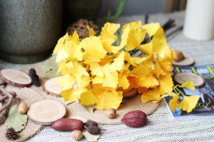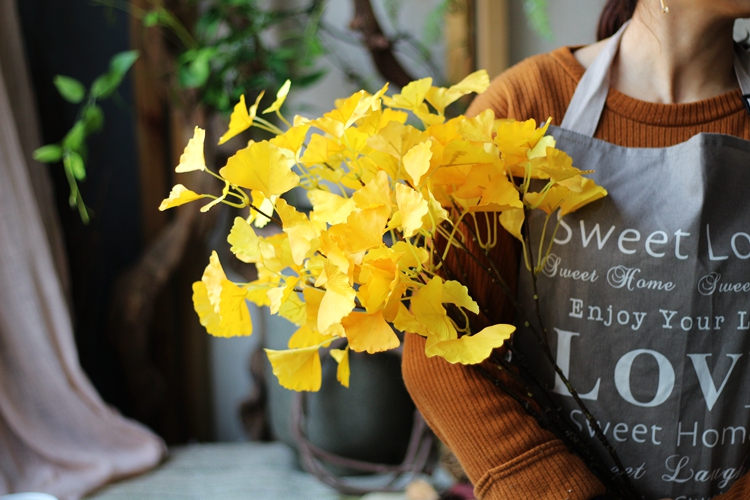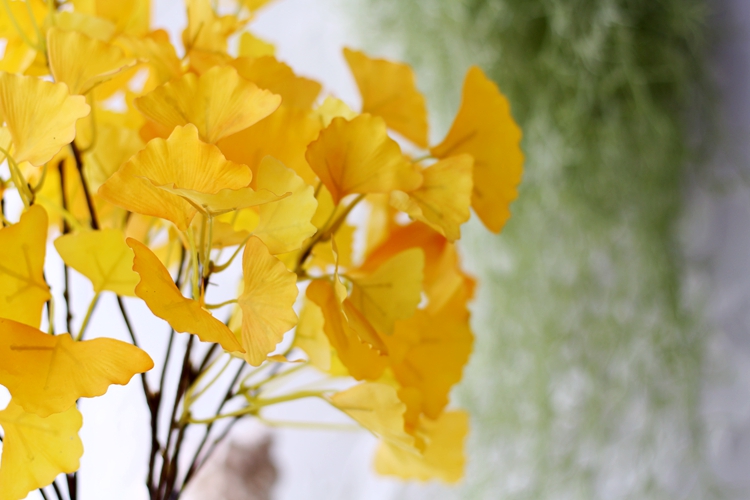 一套(瓶+3枝銀杏葉)【山樹】仿真銀杏葉秋葉樹枝野趣自然家居軟裝飾擺件插花桌面地面