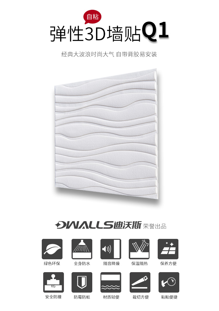Q1/60*60CM奶白色大波浪3d板立體墻貼客廳軟包裝飾背景墻電視墻兒童防撞自粘墻紙墻裙